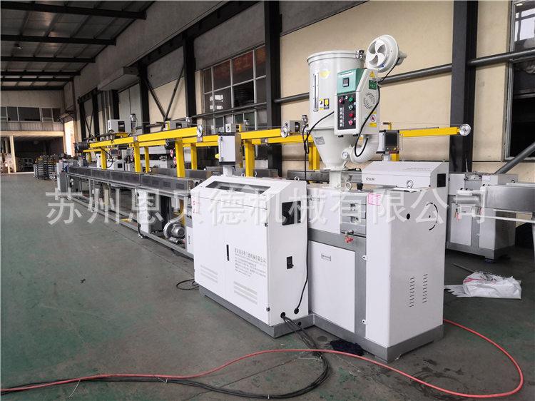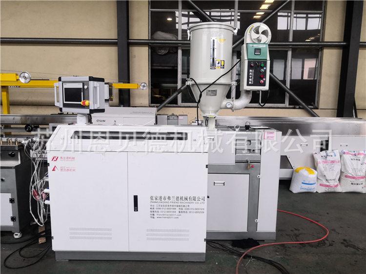 1. La línea de producción se compone principalmente de alimentador automático, tolva de secado, extrusora de un solo tornillo SJ50, bomba dosificadora de fusión, molde, sistema de refrigeración, máquina de arrastre, sistema de almacenamiento de alambre y devanadora.