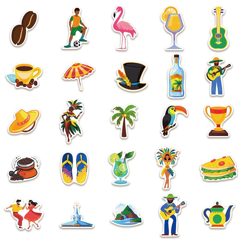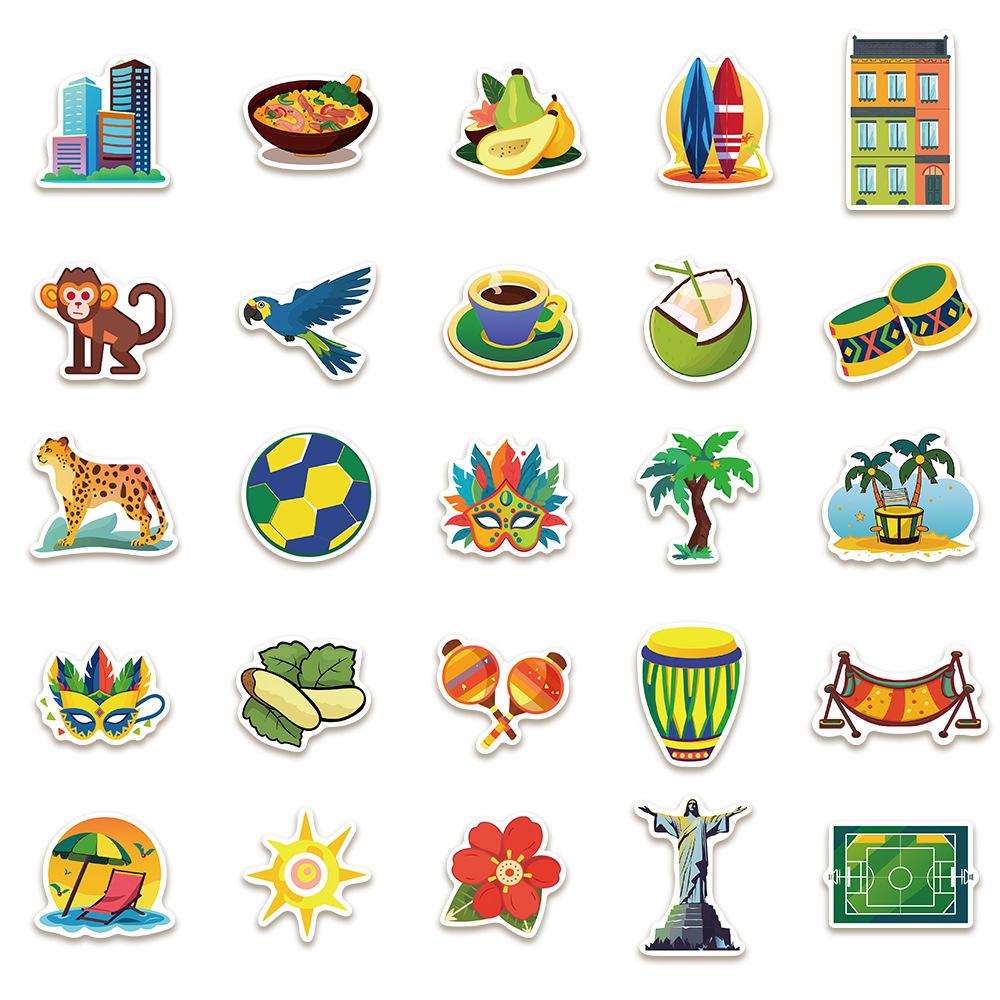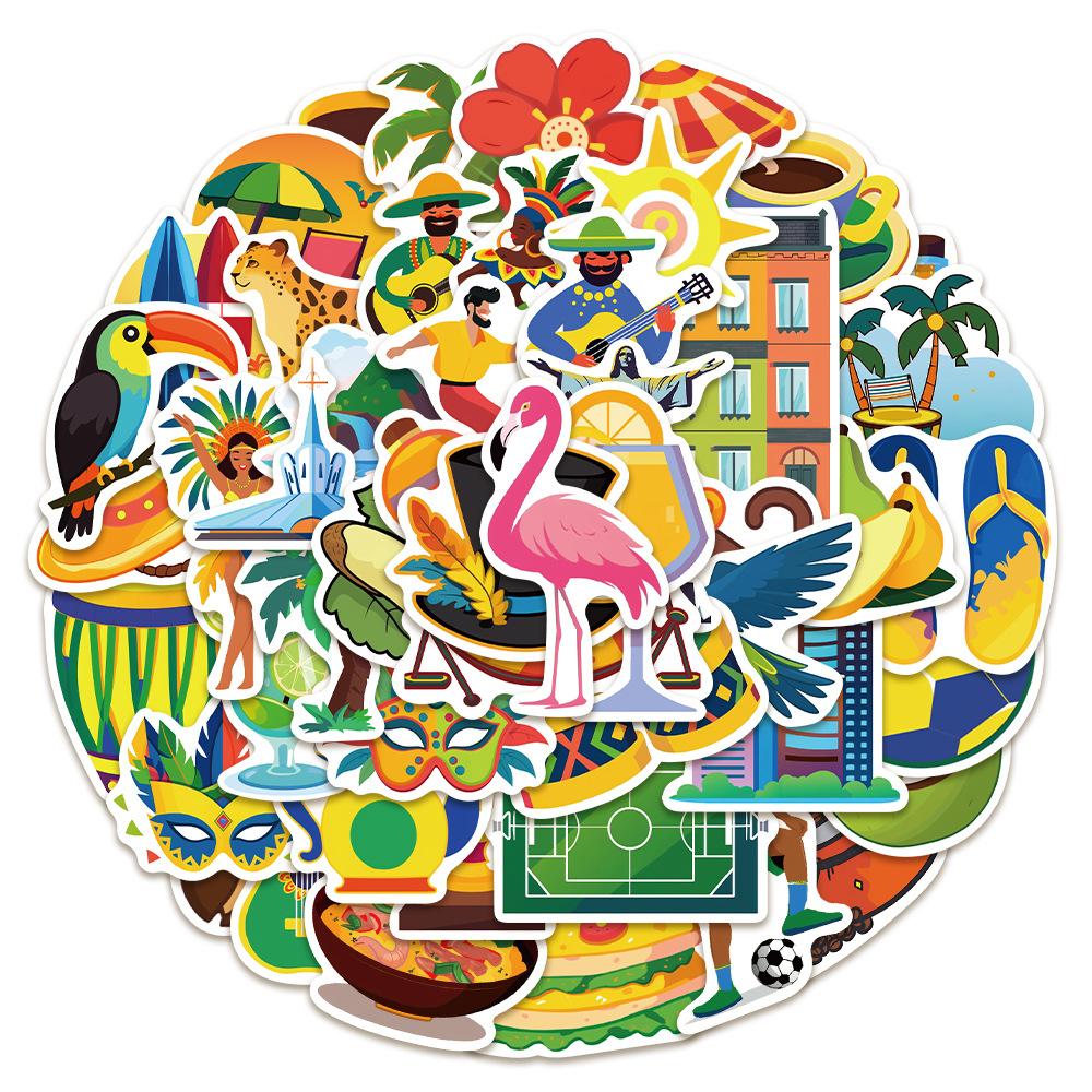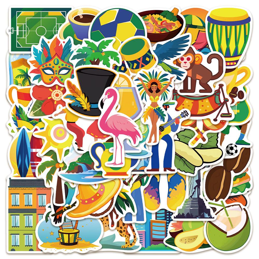 50 pegatinas de estilo brasileño para equipaje, portátil, notebook, teléfono móvil, decoración de carcasa, pegatinas impermeables DIY