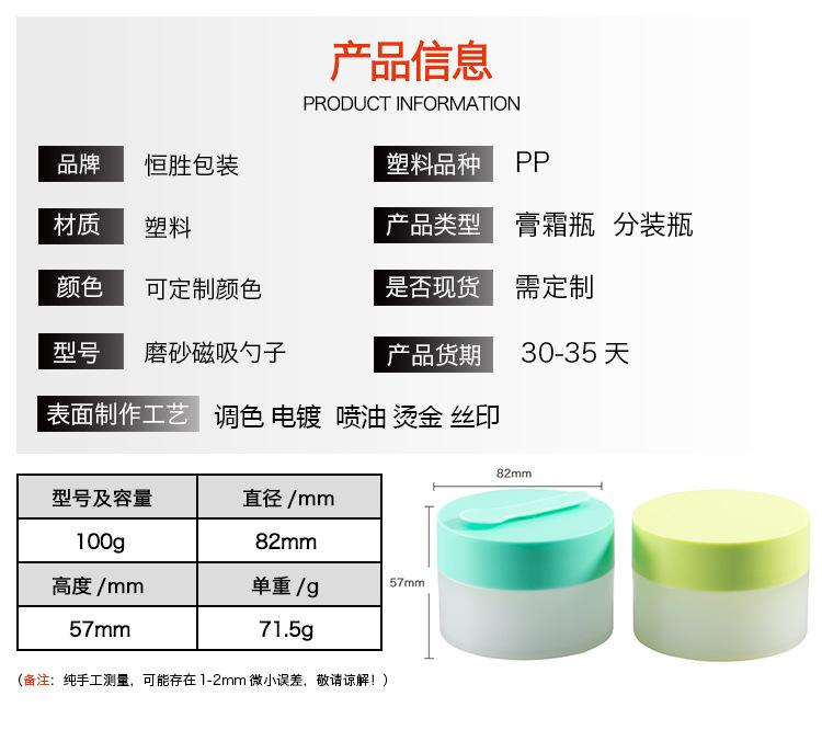 Botella de plástico de gran capacidad de 100 g con cuchara, tacto delicado, botella de crema de PP, botella vacía para mascarilla cosmética