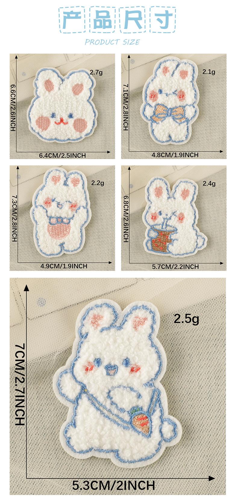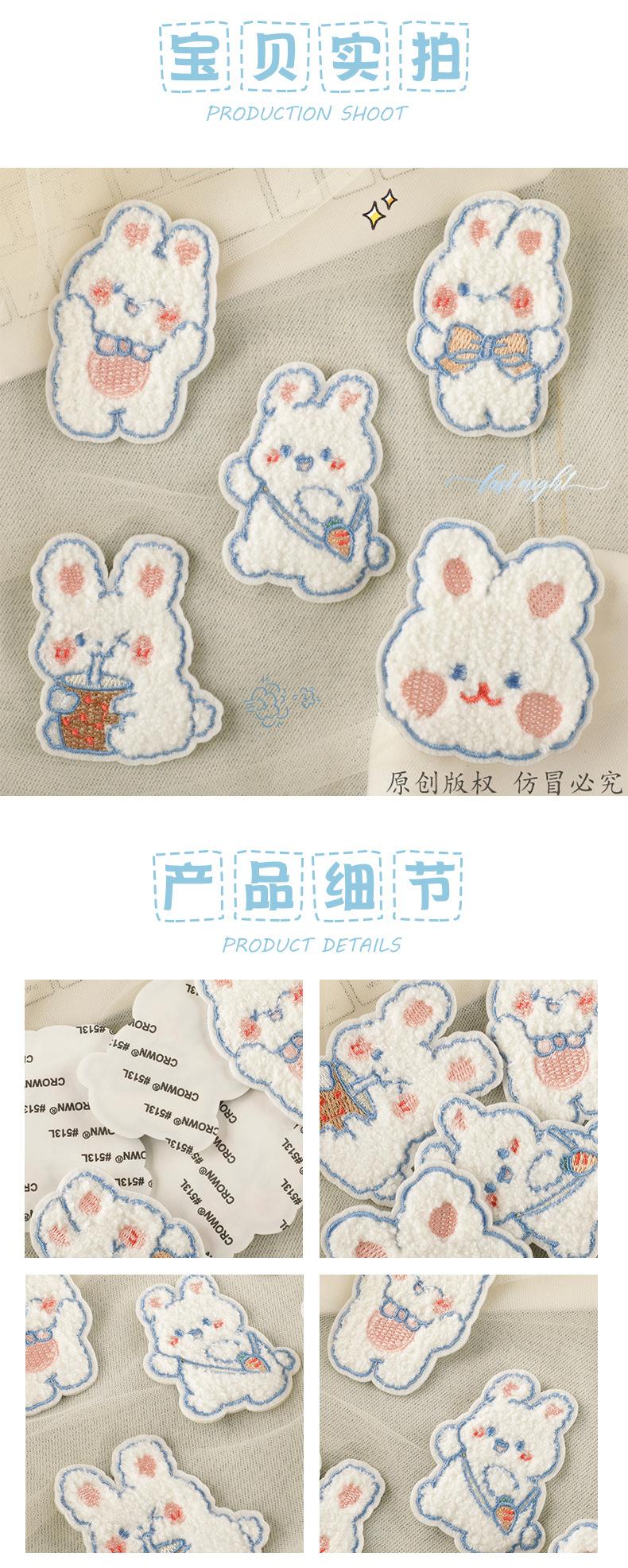 Etiqueta bordada original para accesorios de ropa, parche autoadhesivo con dibujo de conejo, toalla, pegatina bordada de tela de chenilla.