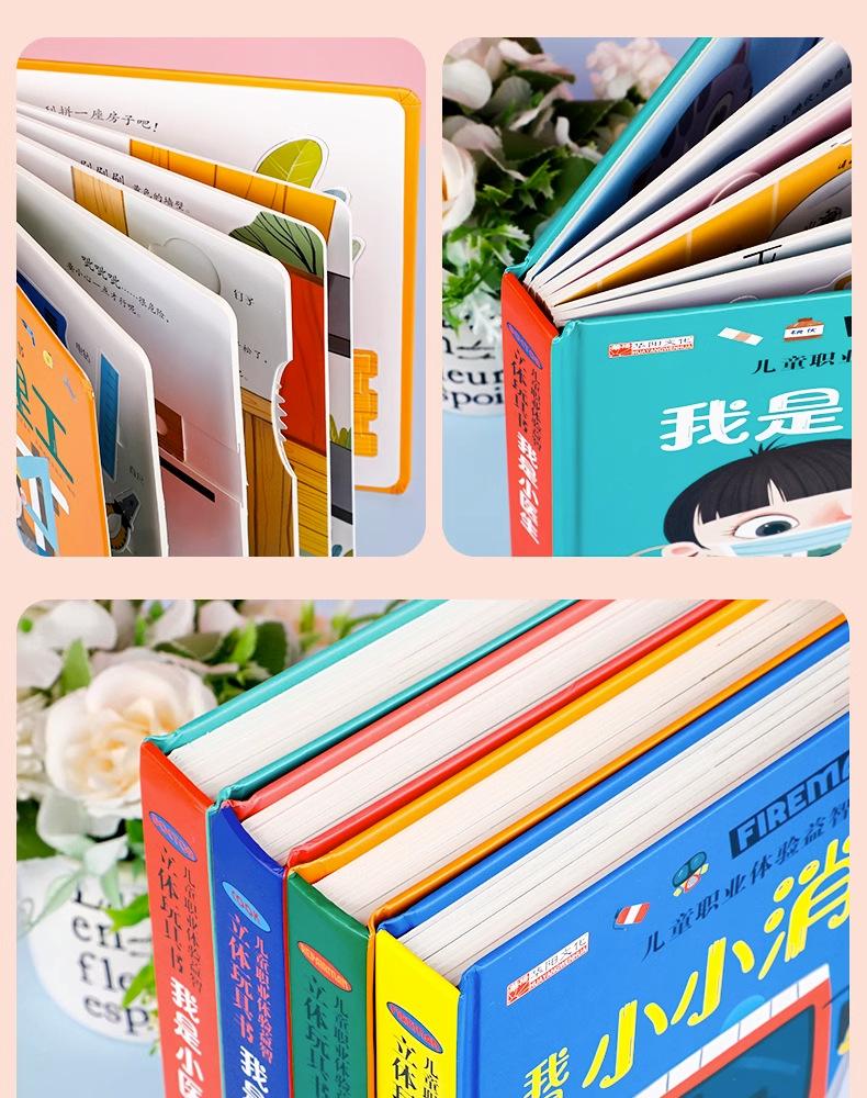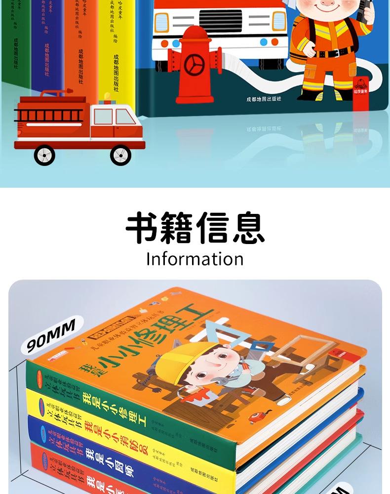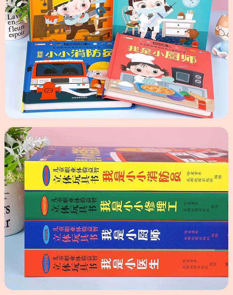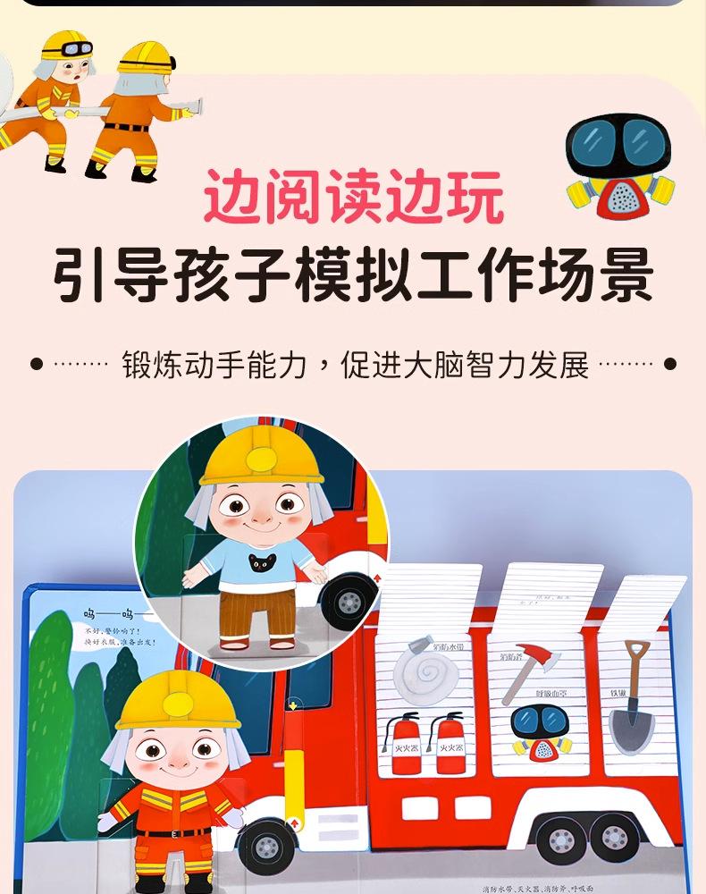 Un conjunto completo de 4 libros ilustrados profesionales para niños, libros de juguetes tridimensionales Soy un pequeño bombero, adecuados para clases de jardín de infantes.