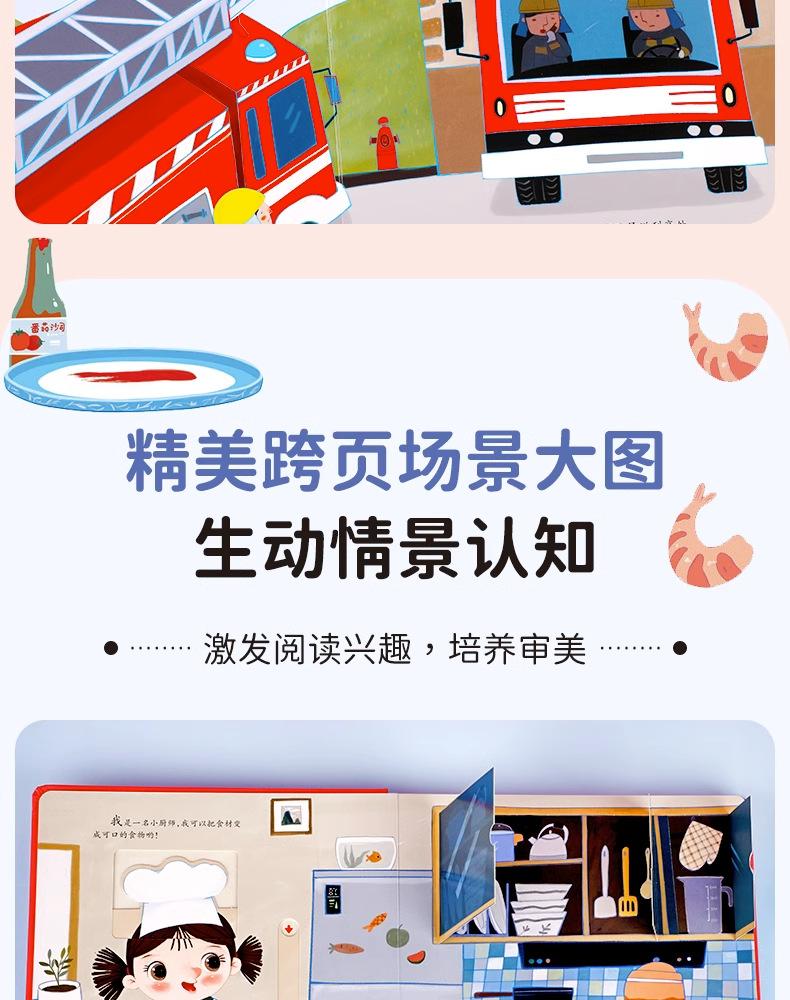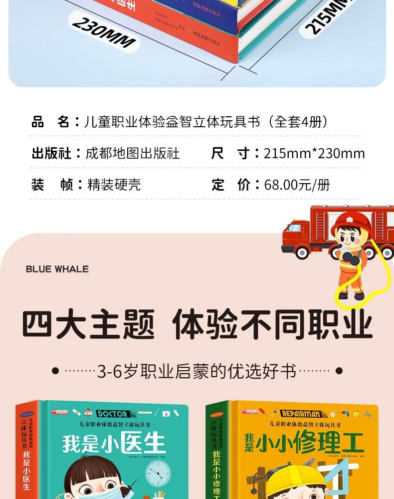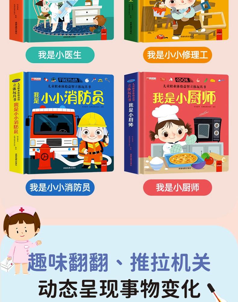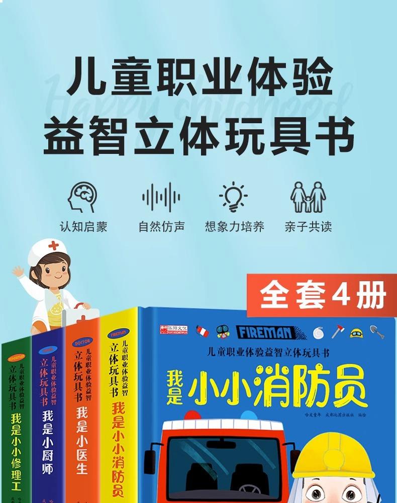 Un conjunto completo de 4 libros ilustrados profesionales para niños, libros de juguetes tridimensionales Soy un pequeño bombero, adecuados para clases de jardín de infantes.