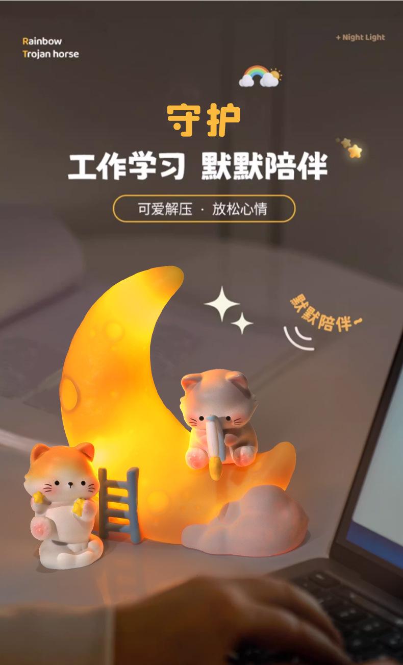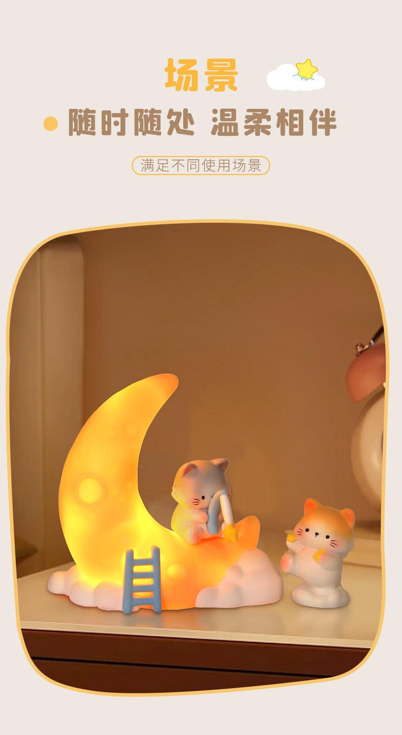 Lámpara de noche con forma de estrella y luna, diseño de gatito de dibujos animados, luz de vinilo con forma de estrella para dormitorio, decoración, regalo de cumpleaños