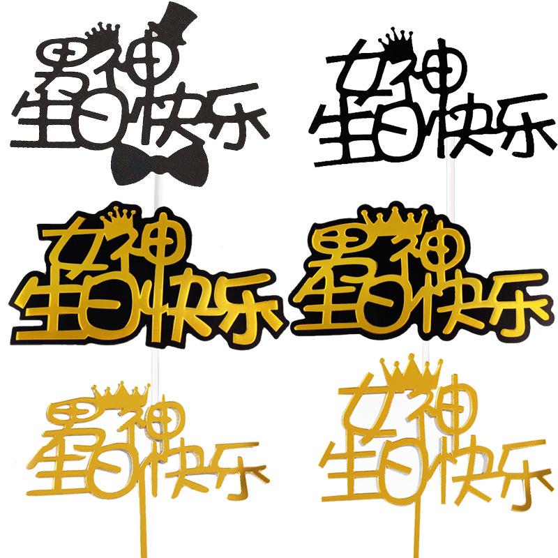 Reina Diosa Dorada Tarjeta Acrílica Negra Decoración para Pastel de Feliz Cumpleaños Plug-in Adorno Mesa de Postres