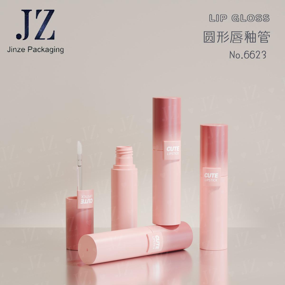 Tubo de esmalte de labios redondo Jinze, tubo de color de labios de pared gruesa, 5,2 ml, material de embalaje de plástico.