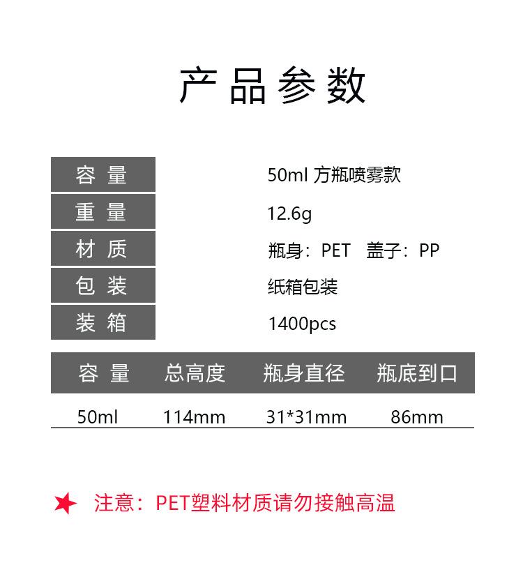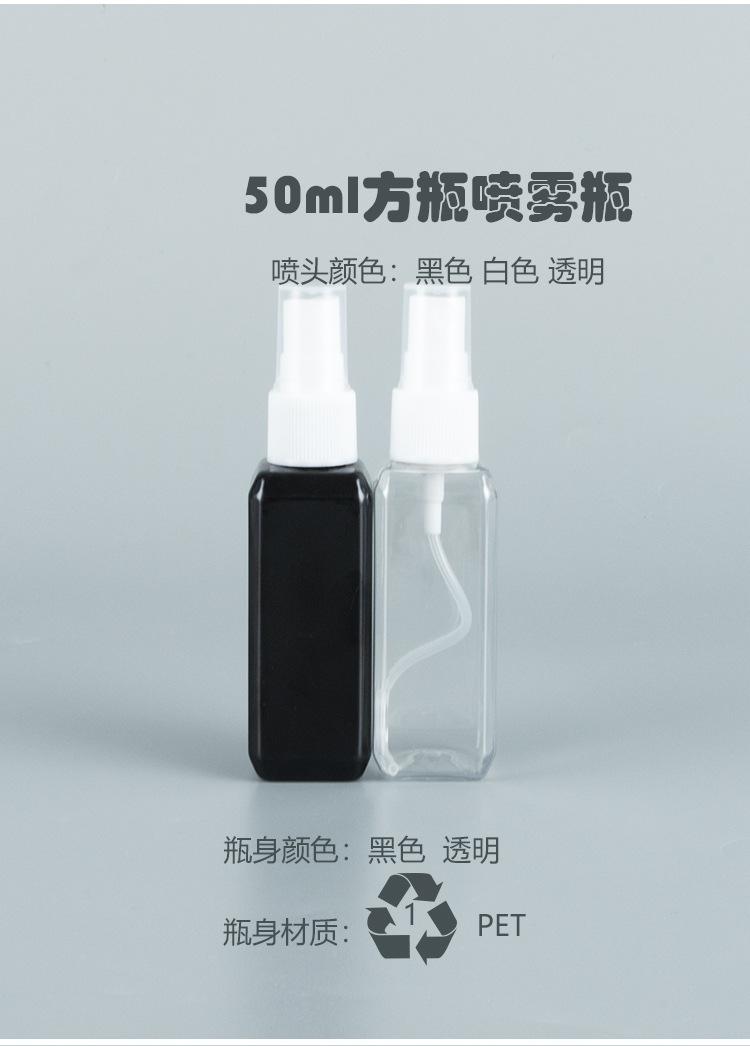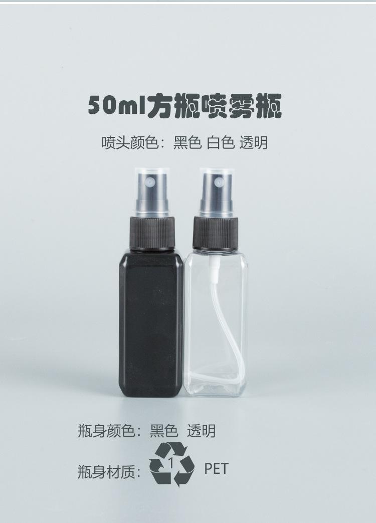 R20 black nozzle; 50ml black square bottle; pet
