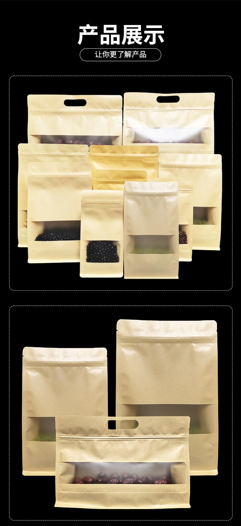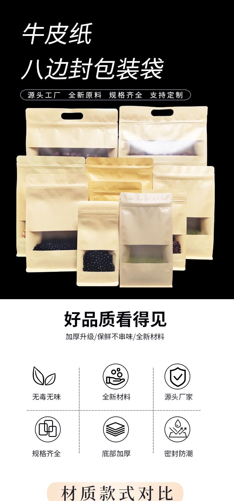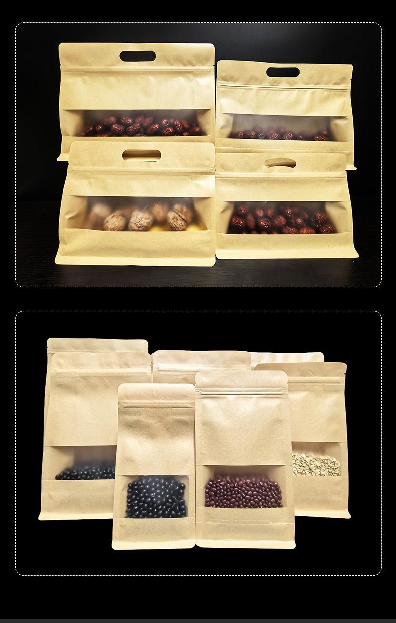 Bolsa de papel kraft, bolsa autosellante, bolsa independiente, sello de ocho lados, ventana esmerilada, bolsa para envasar té, nueces, alimentos, personalizada, al por mayor