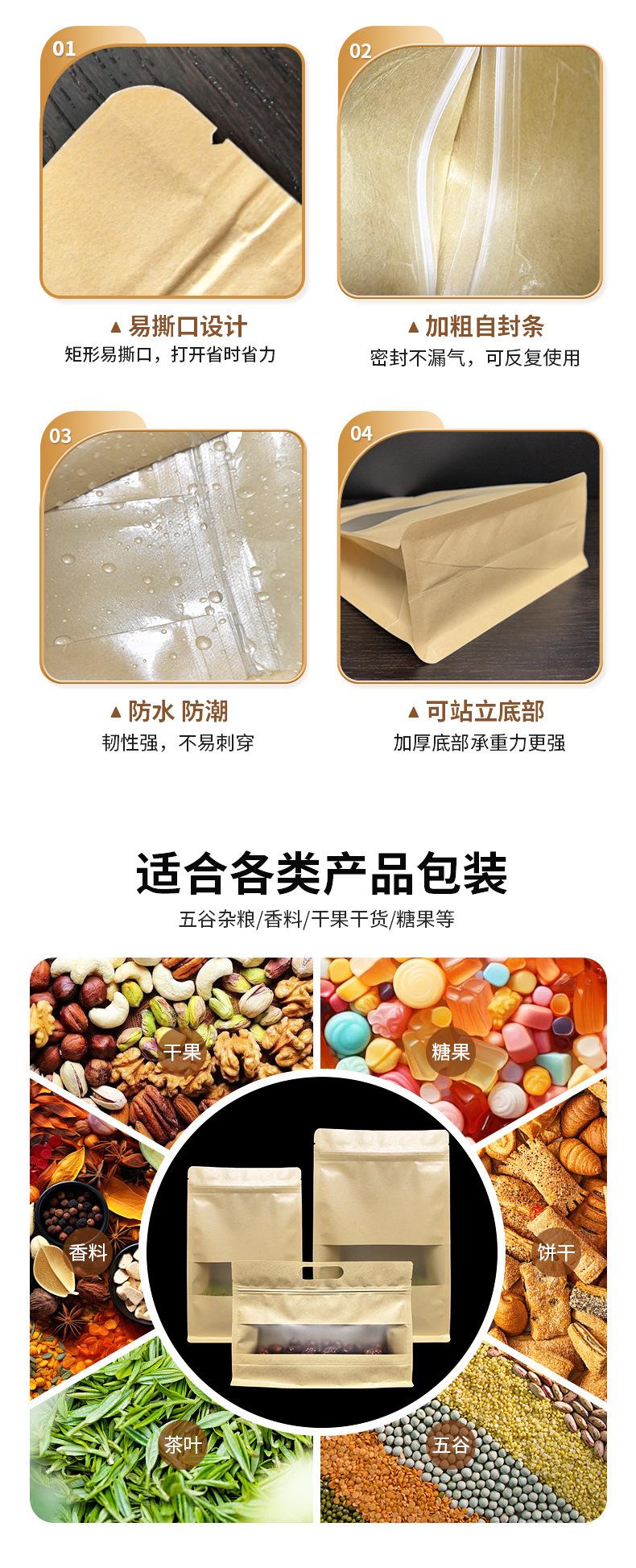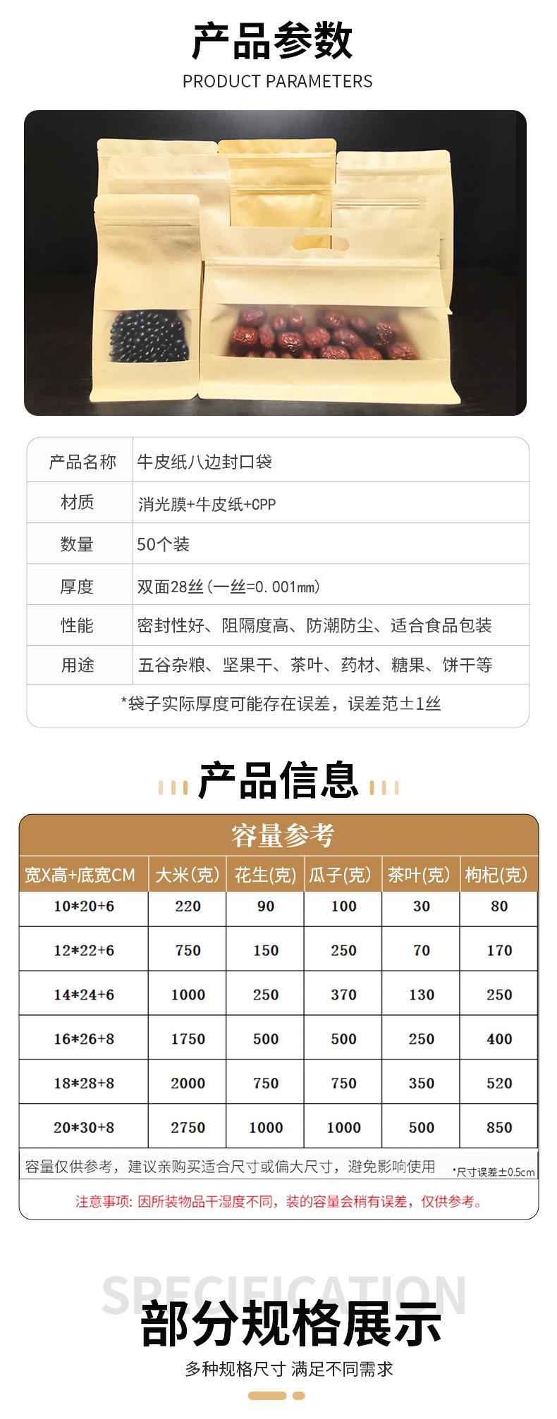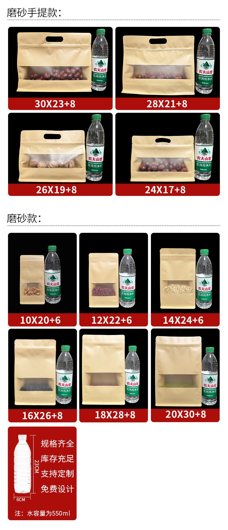 Bolsa de papel kraft, bolsa autosellante, bolsa independiente, sello de ocho lados, ventana esmerilada, bolsa para envasar té, nueces, alimentos, personalizada, al por mayor