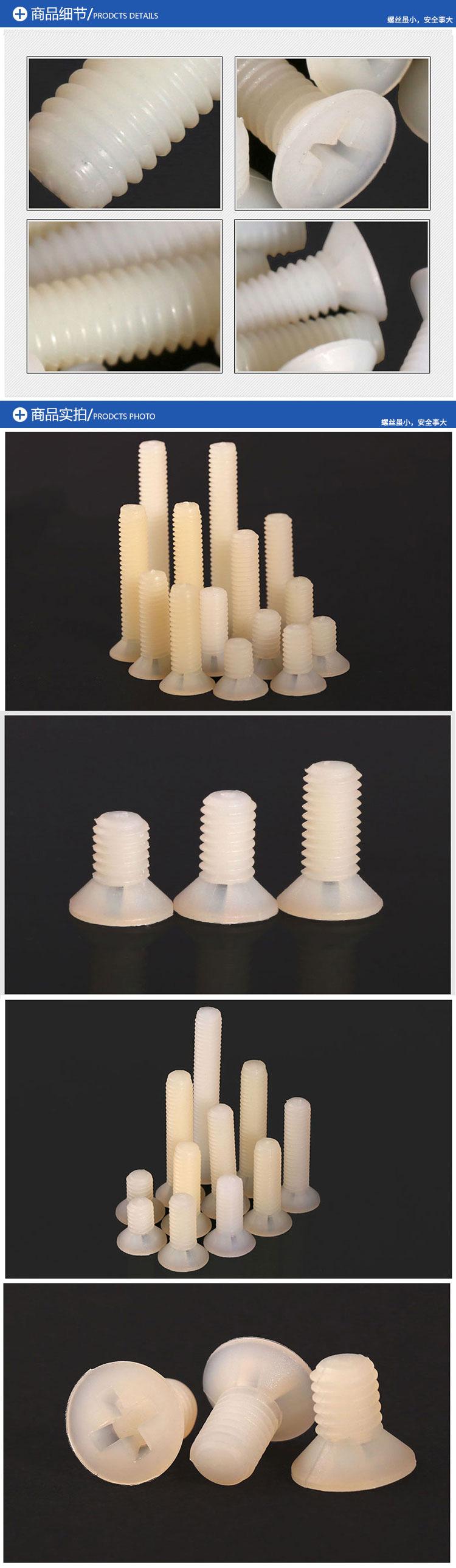 M5M6M8 cabeza avellanada cruz nylon Blanco tornillo cabeza plana tornillo de plástico tornillo de plástico perno