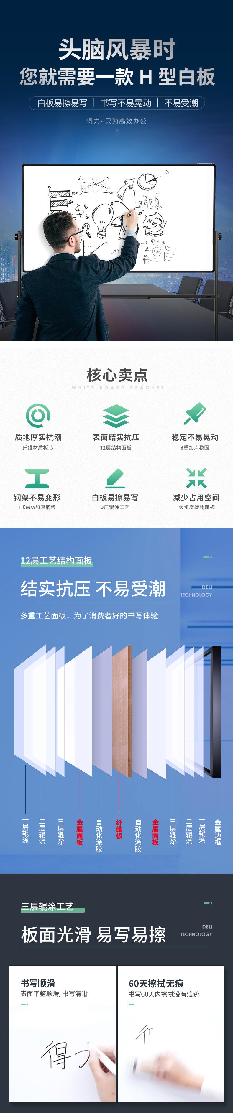 Soporte de pizarra magnética de doble cara Deli 7884, elevación móvil, para oficina, enseñanza, formación, conferencias, pizarra blanca
