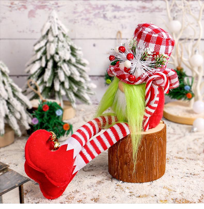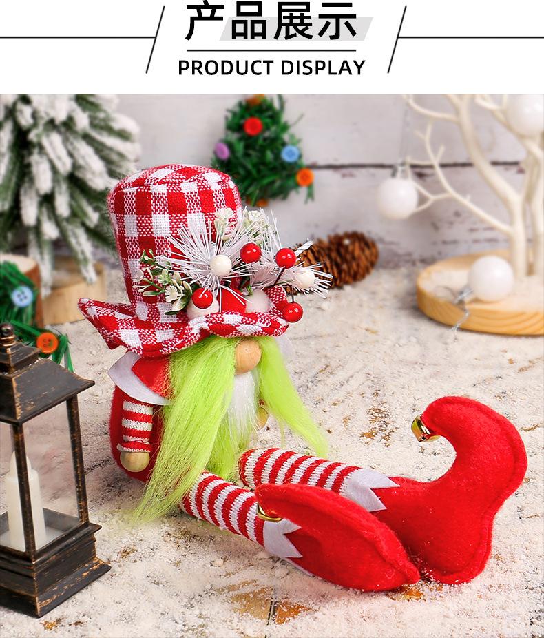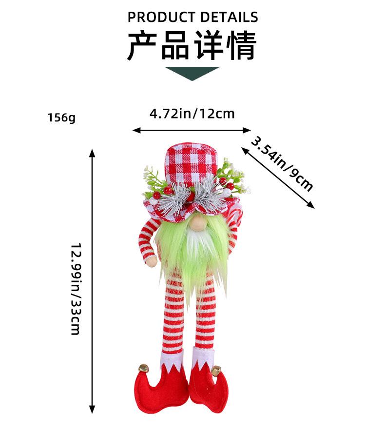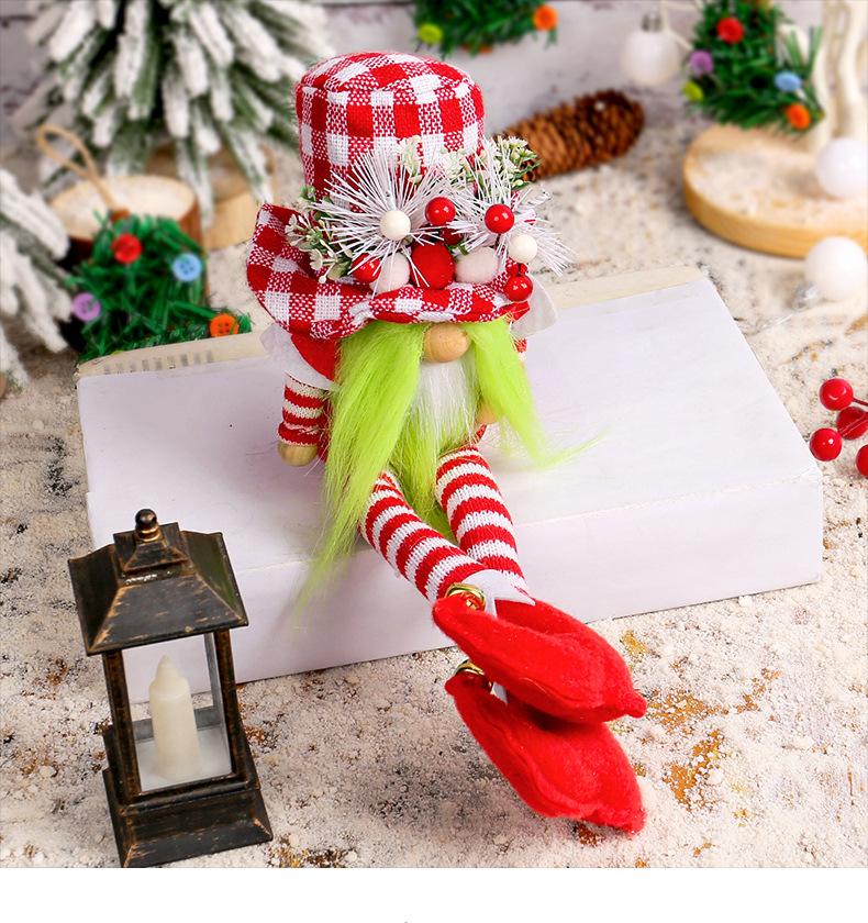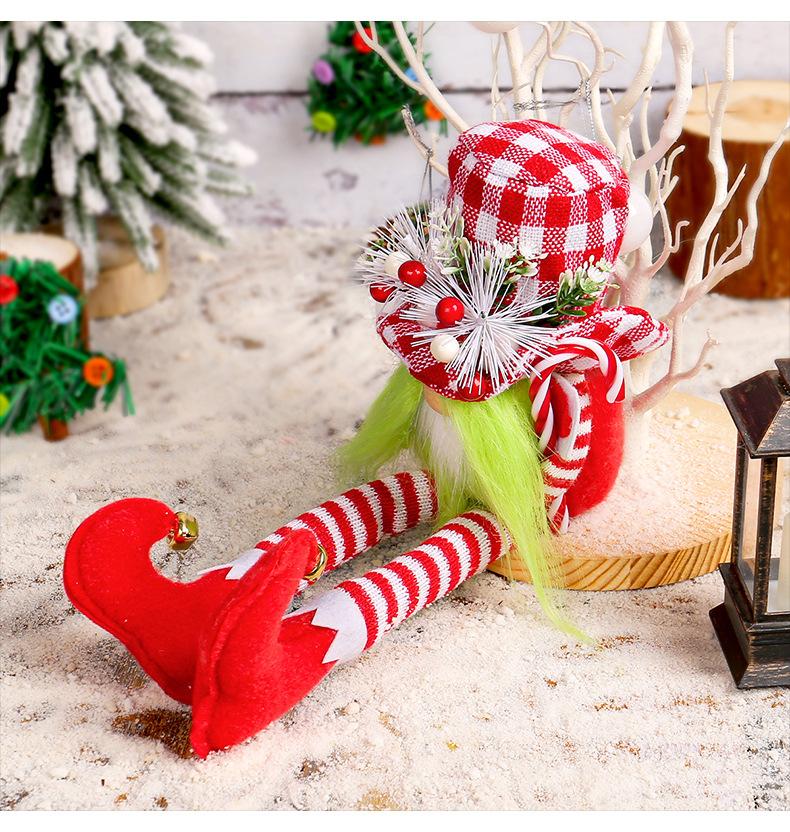 Muñeco de Navidad de Piernas Largas 2025 Muñeco de Barba Verde Sombrero de Cuadros Rojo y Blanco Muñeco sin Rostro Decoración para el Hogar Adornos de Navidad