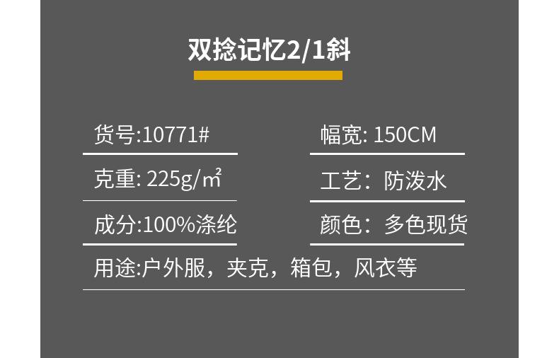 Tejido de memoria oblicua 2/1 de doble torsión 75D, resistente al agua, cortavientos, para ropa de exterior, equipaje