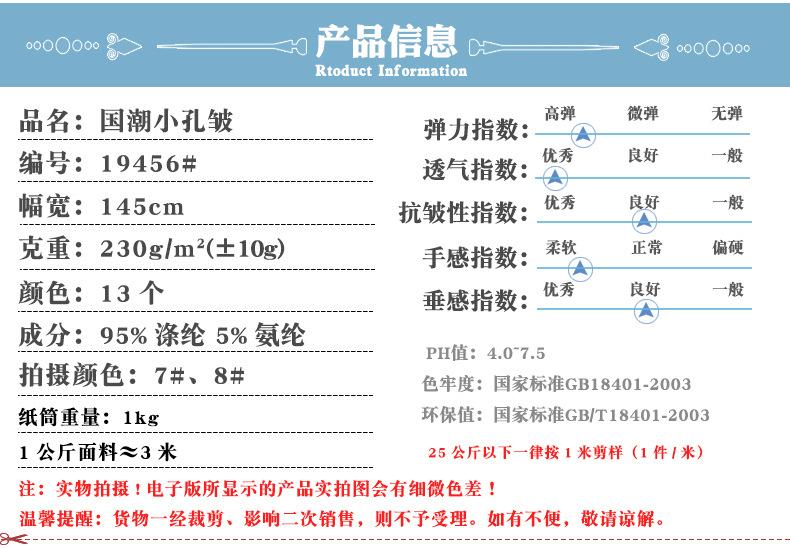 Cada tela incluye una muestra o carta de colores gratuita. Para ahorrar en gastos de envío, le recomendamos que fotografíe la "Foto especial de la carta de colores de muestra". Se la enviaremos en 24 horas por Best Express. Su precio es de solo 8 yuanes dentro de la provincia de Guangdong y 10 yuanes fuera de ella. Si necesita un envío urgente, también puede hacerlo por SF Express. Para más información sobre el envío, póngase en contacto con atención al cliente.