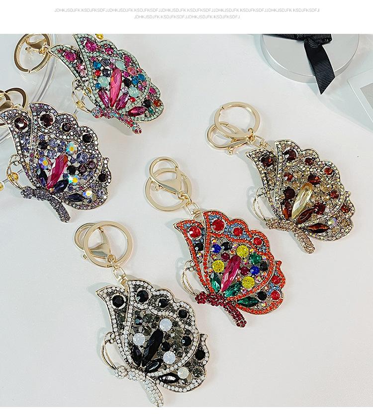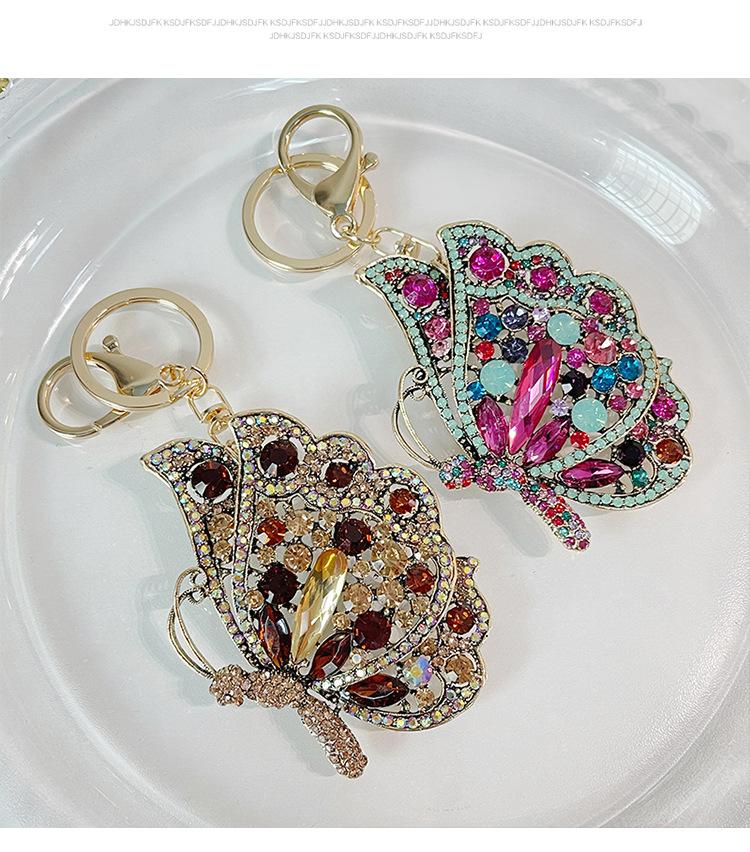 Compra Nuevo y creativo llavero de mariposa con diamantes para coche, accesorio para bolso de mujer, pequeño regalo, llavero con colgante de insecto al por mayor en Joom.pro
