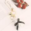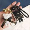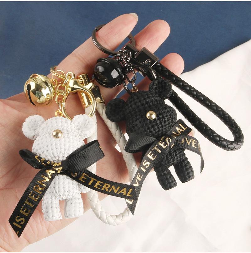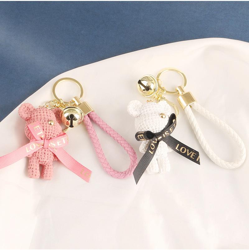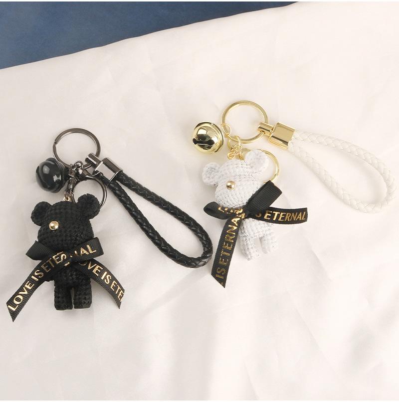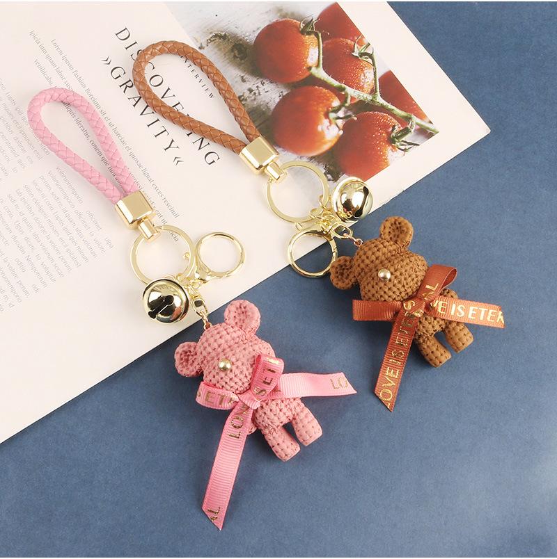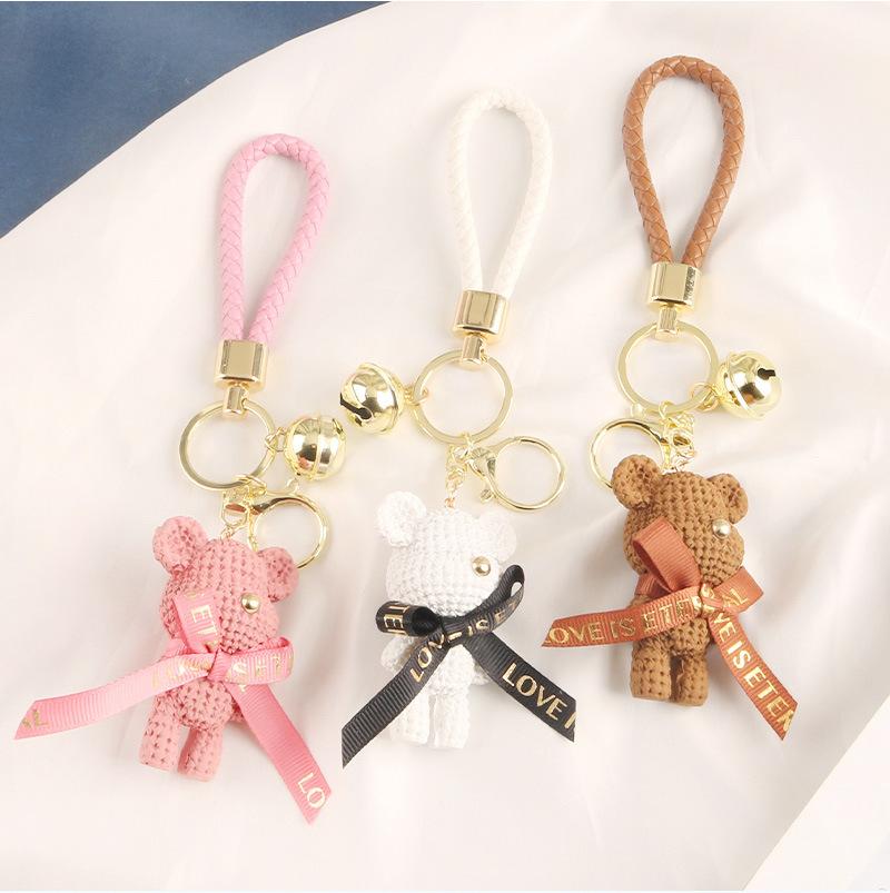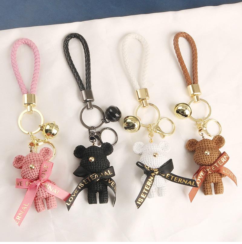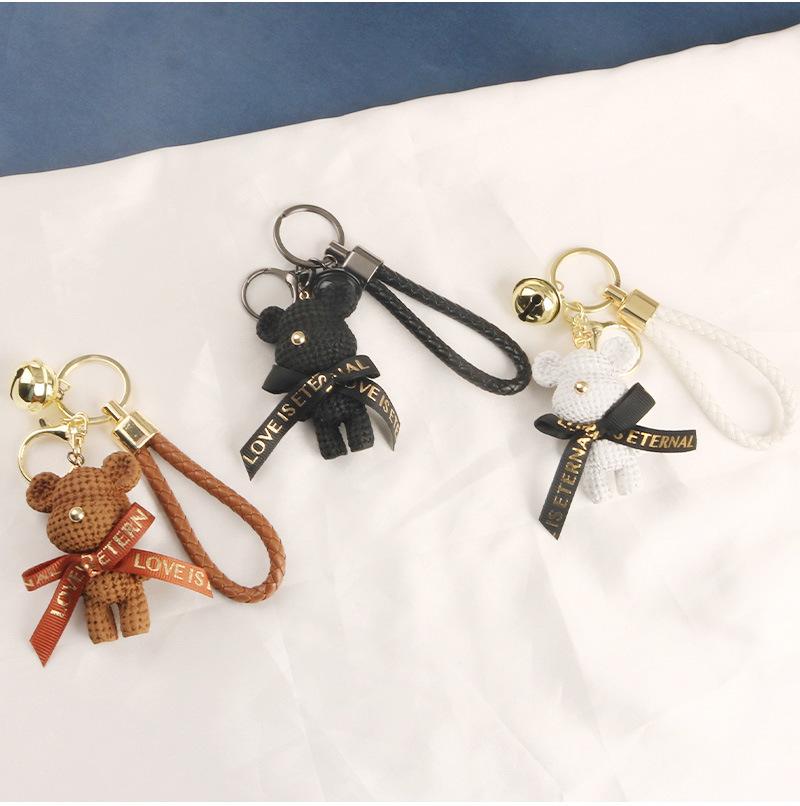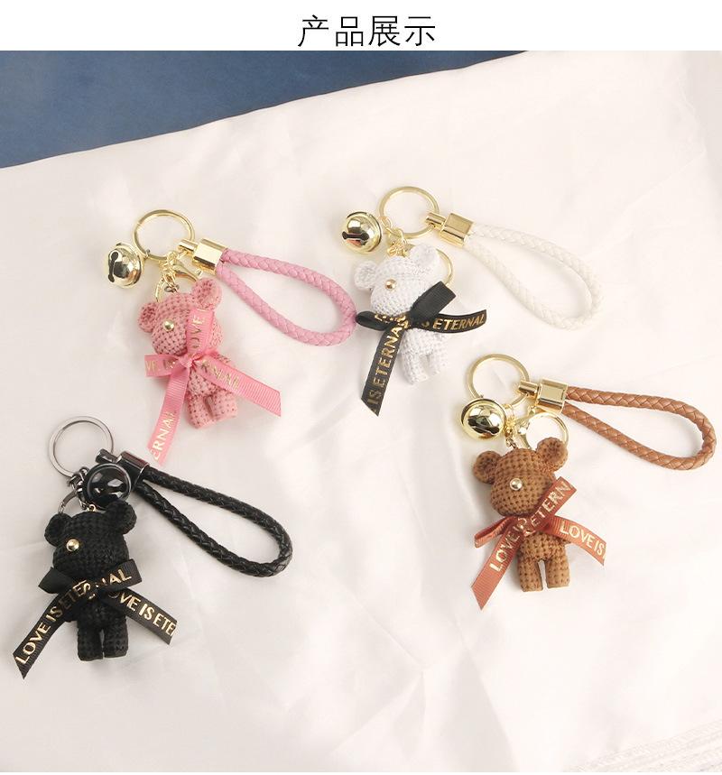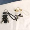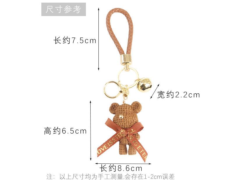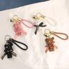 Lindo llavero con colgante de oso con cinturón para coche, con lazo de dibujos animados, accesorios para bolso de pareja, decoración