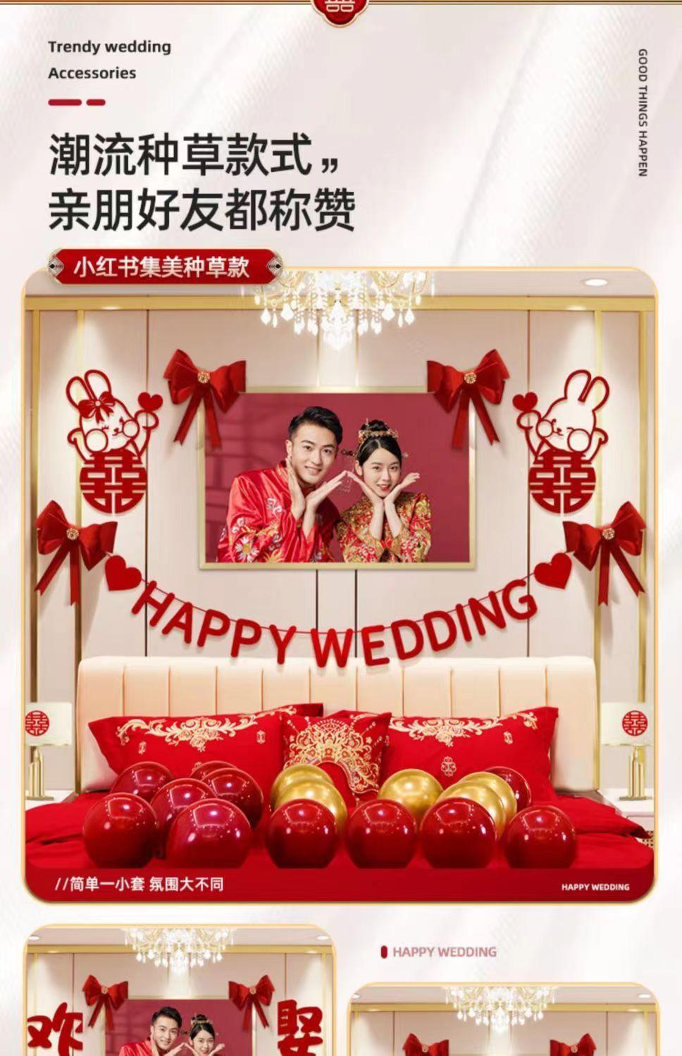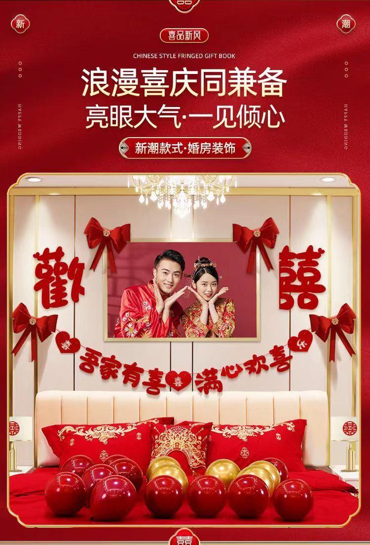 Conjunto de diseño de sala de bodas, decoración de bodas, dormitorio para hombre y mujer, sala de estar, fondo, pared, flores, casa nueva, suministros para bodas