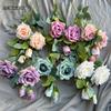 Ramo de rosas artificiales de varias cabezas para decoración del hogar, sala de estar, arreglo floral para boda