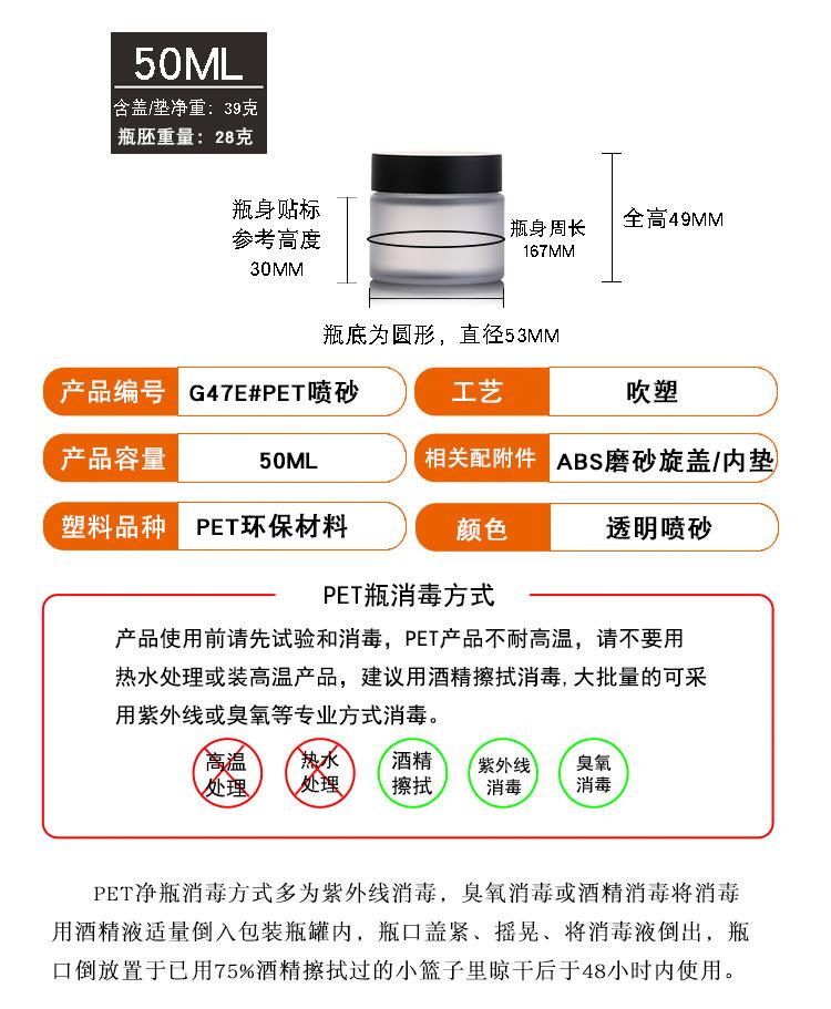 G47E-50G matte bottle body ABS matte screw cap inner pad, 12200-190ML matte bottle body ABS double frosted lid...