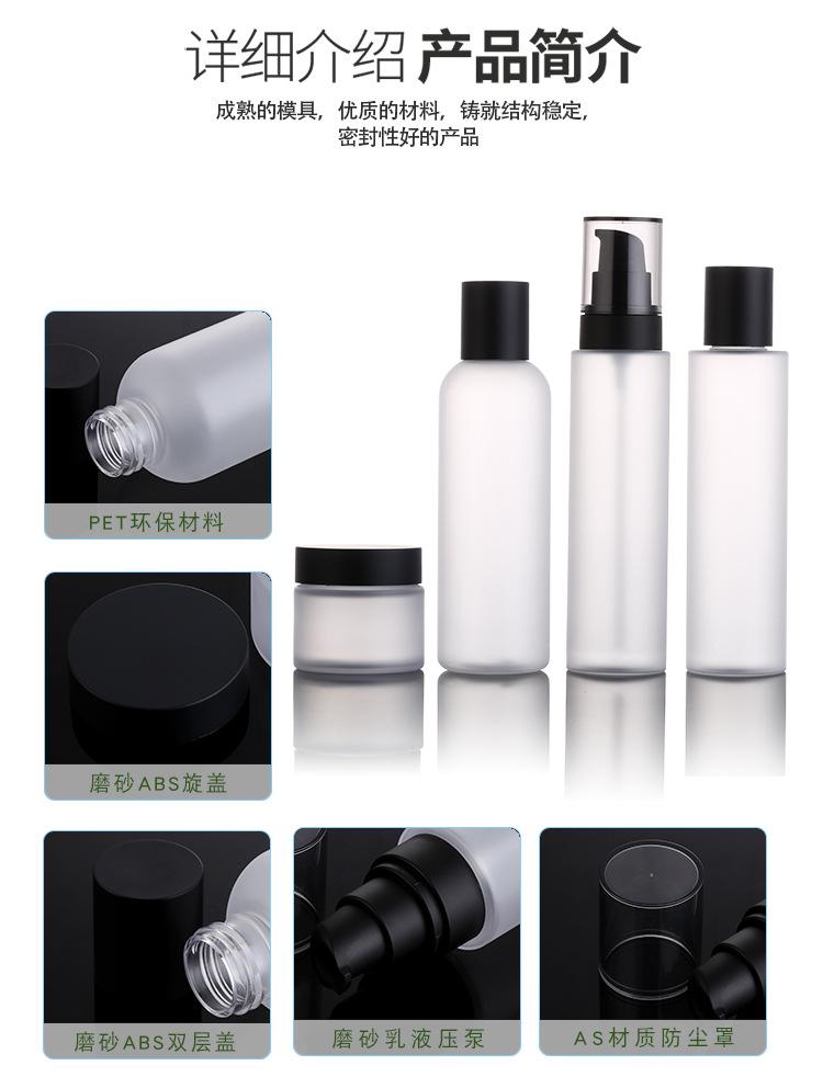 Cosmetic bottle; 12200-190ML frosted bottle body ABS double frosted cap inner plug; pet