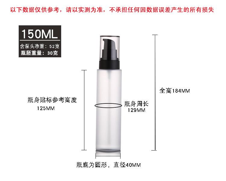 Cosmetic bottle; 0825-150ML frosted bottle body frosted half cover emulsion pump; pet