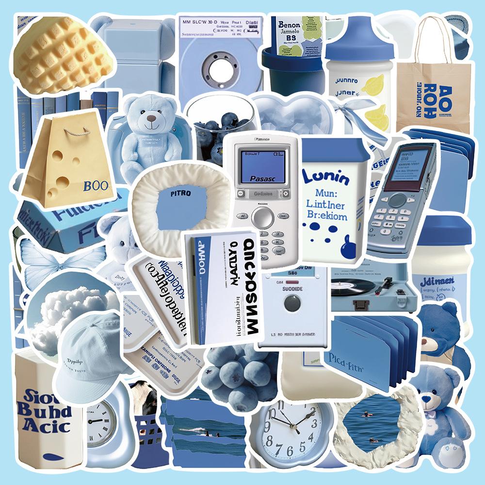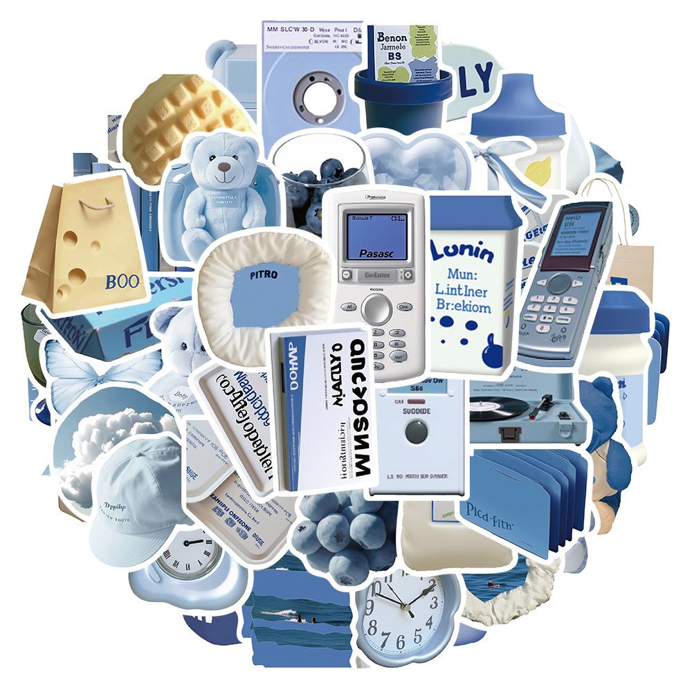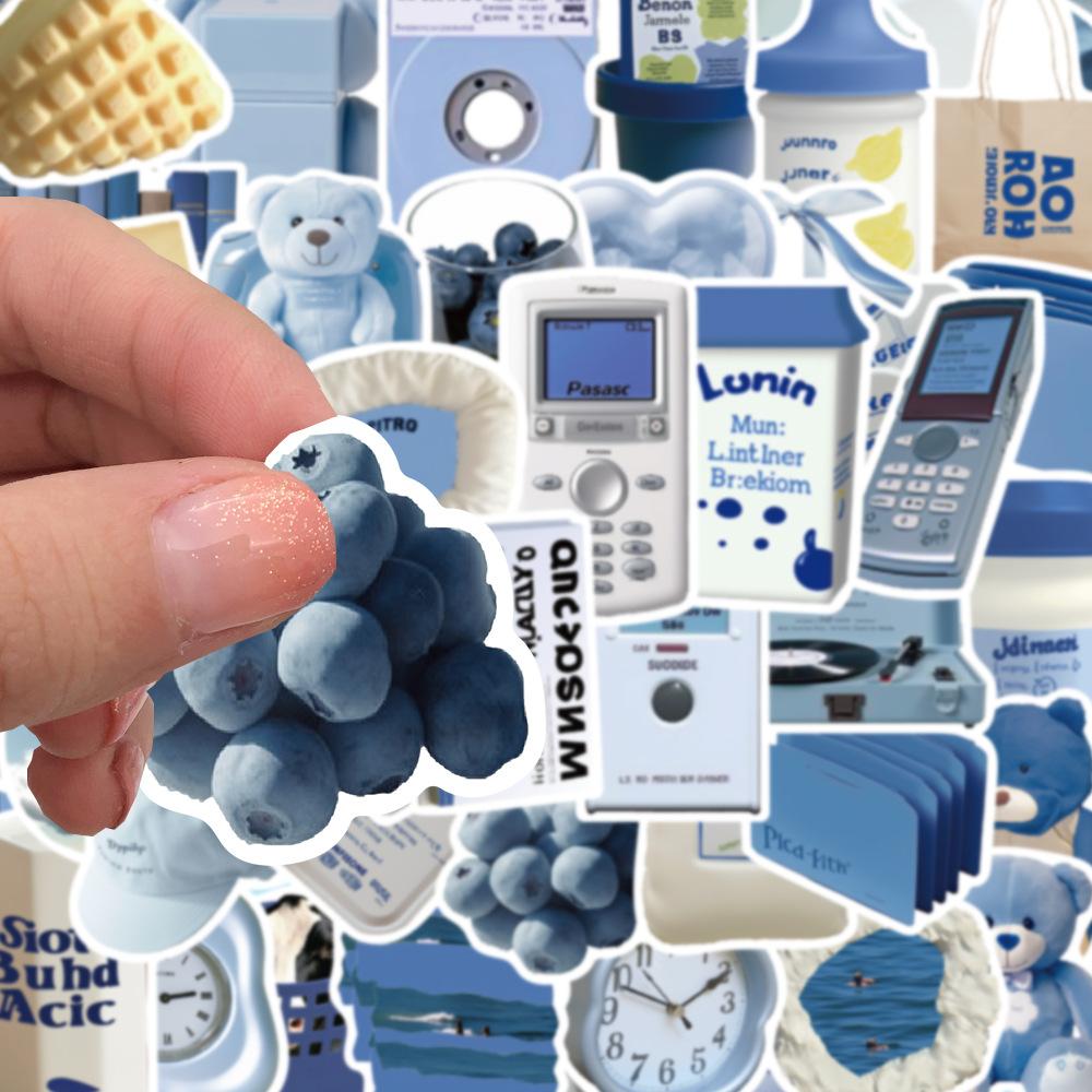 50 piezas de pegatinas azules estilo Ins, serie de pegatinas decorativas para teléfono móvil, taza de agua, material de libro de mano, venta al por mayor