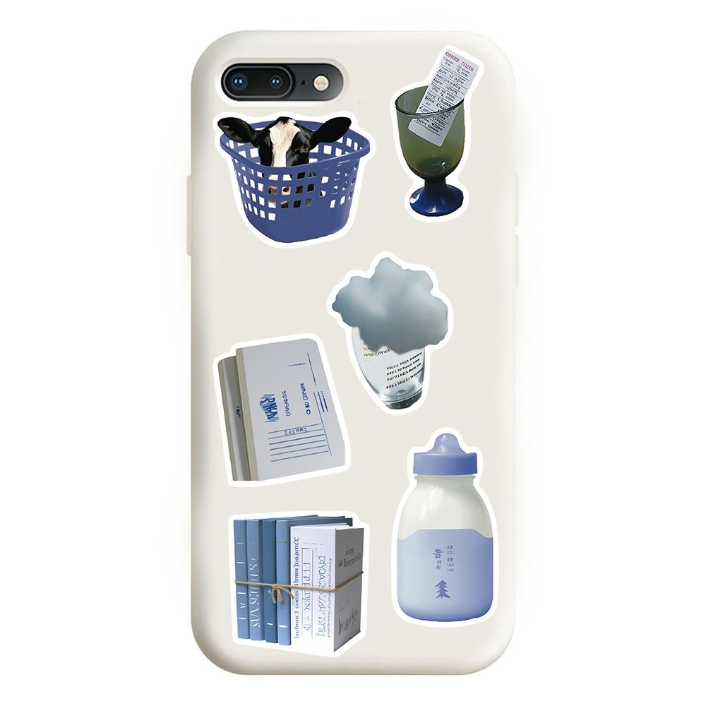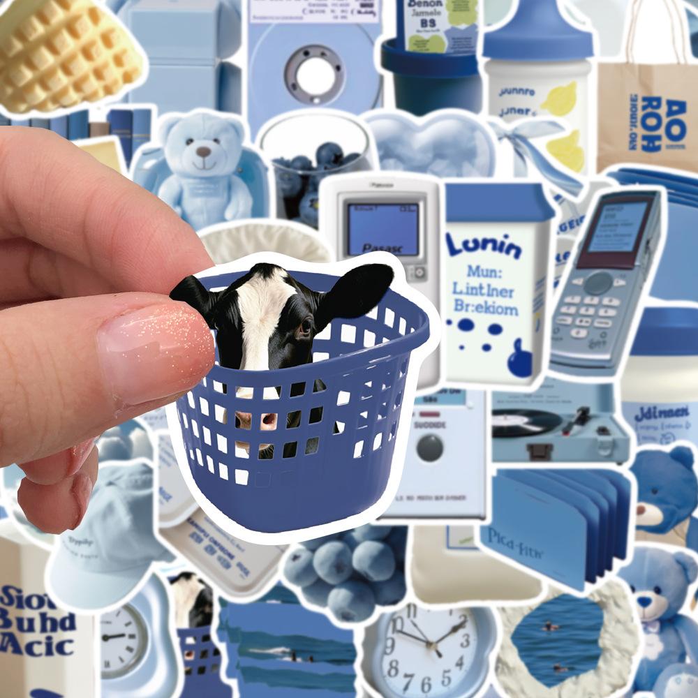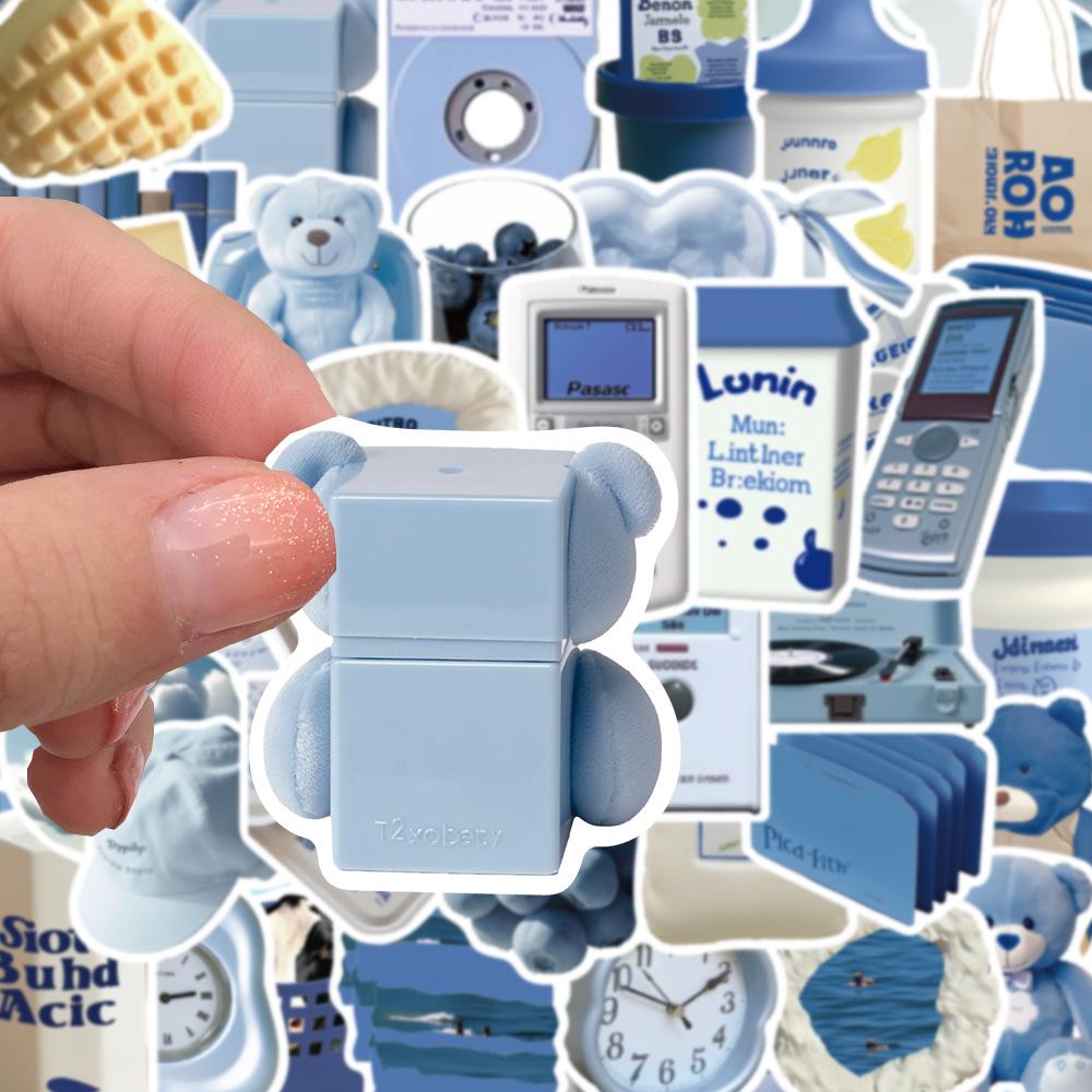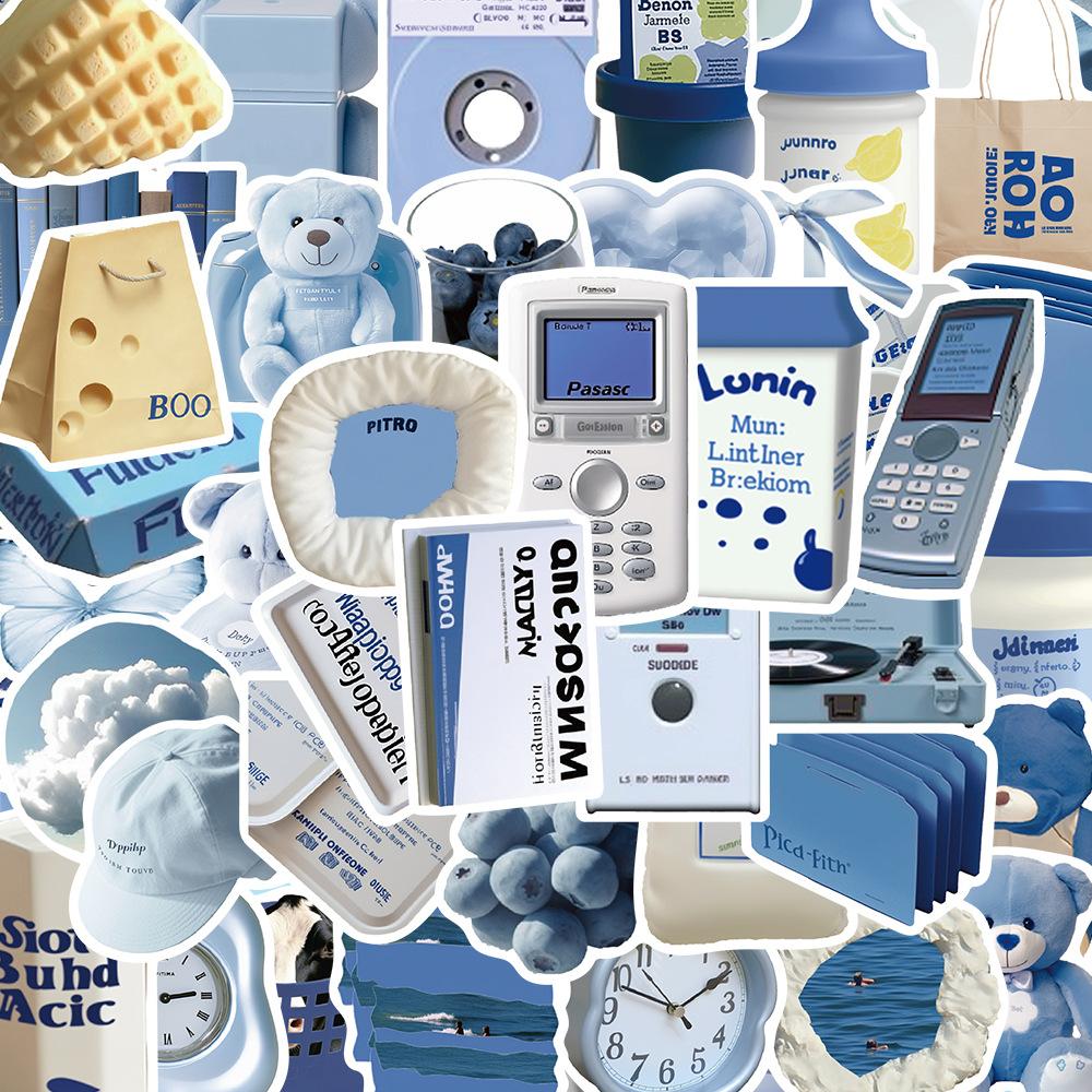 50 piezas de pegatinas azules estilo Ins, serie de pegatinas decorativas para teléfono móvil, taza de agua, material de libro de mano, venta al por mayor