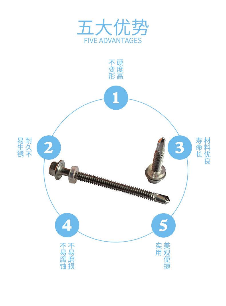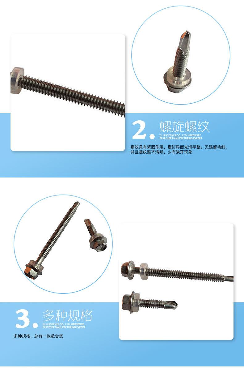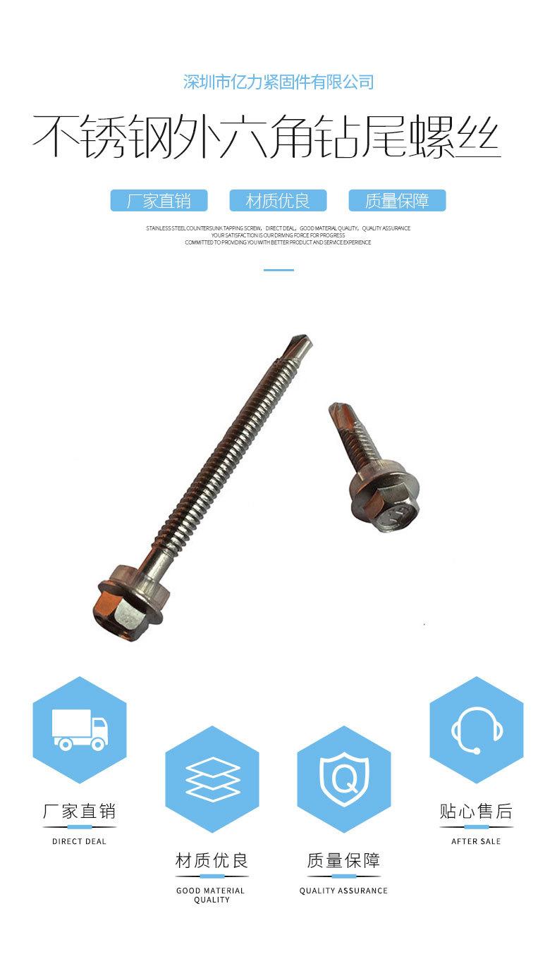 Tornillo de cola de milano con cabeza hexagonal externa de acero inoxidable 410, autorroscante y autoperforante, suministro multimodelo.
