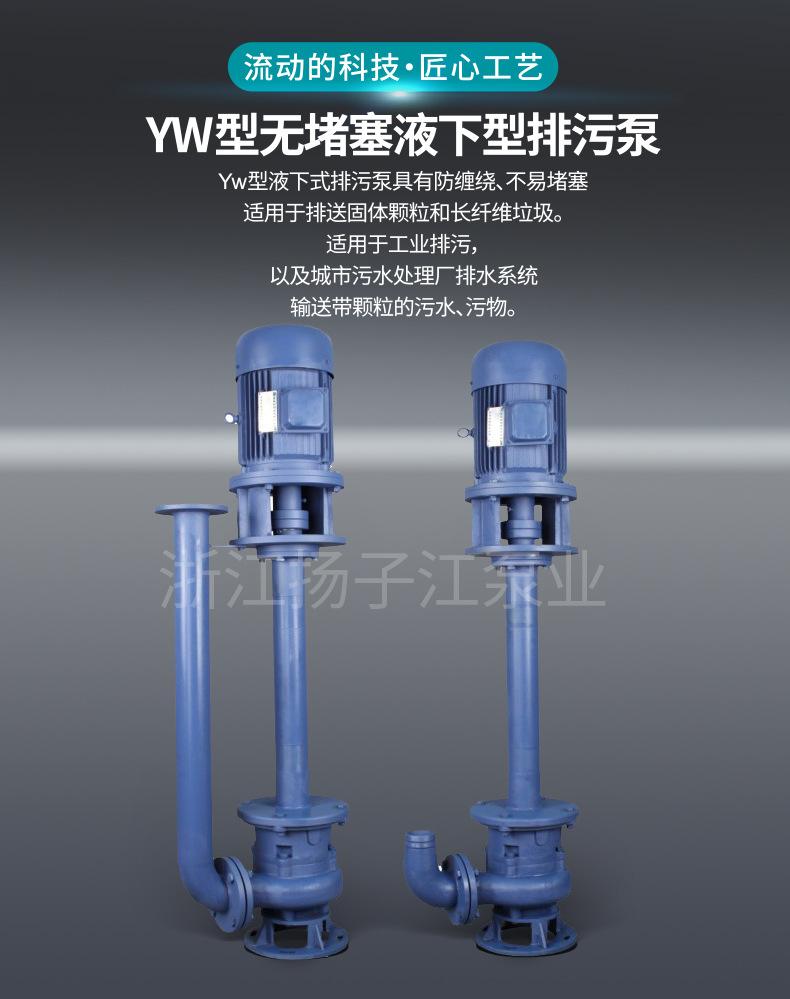 La bomba sumergible para aguas residuales tipo YW sin obstrucciones es un producto de bomba de nueva generación desarrollado con éxito basándose en la introducción de tecnología avanzada extranjera y combinado con las características de uso de las bombas de agua domésticas. Tiene un importante efecto de ahorro de energía, anti-enrollamiento, sin obstrucciones, instalación automática y control automático y otras características. Tiene un efecto único en la descarga de partículas sólidas y residuos de fibra larga. Esta serie de bombas adopta una estructura de impulsor única y un nuevo tipo de sello mecánico, que puede transportar eficazmente materiales sólidos y fibras largas. En comparación con el impulsor tradicional, el impulsor de esta bomba adopta la forma de un canal de flujo único, que es similar a un codo con el mismo tamaño de sección transversal. Tiene muy buenas propiedades de flujo y está equipado con una voluta razonable, lo que hace que la bomba sea altamente eficiente y amigable con el impulsor. Después de las pruebas de equilibrio dinámico y estático, la bomba no tiene vibraciones durante el funcionamiento.