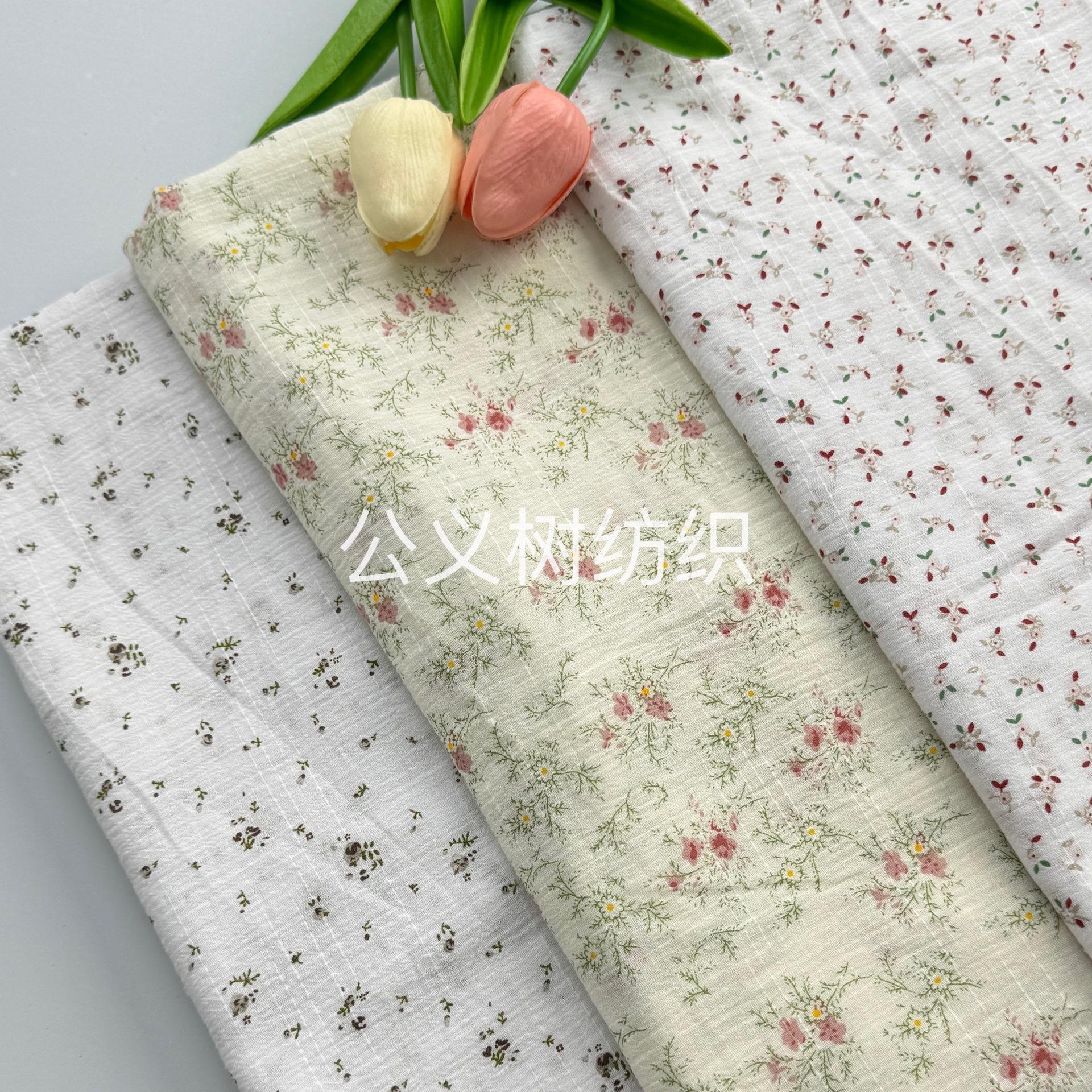 Tela fresca y agradable para la piel, de algodón lavado con arena, de bambú, crepé, tela clásica con estampado floral bordado
