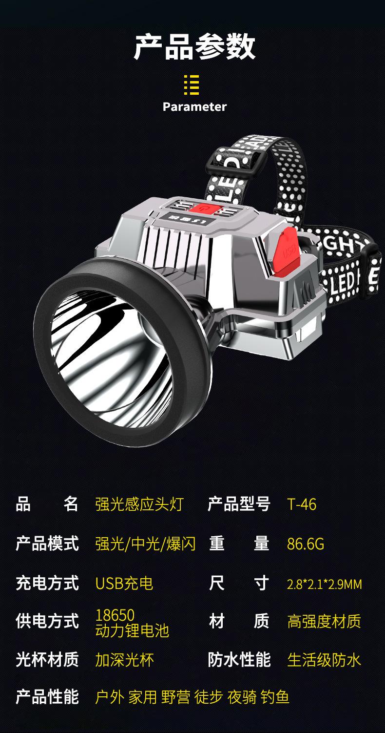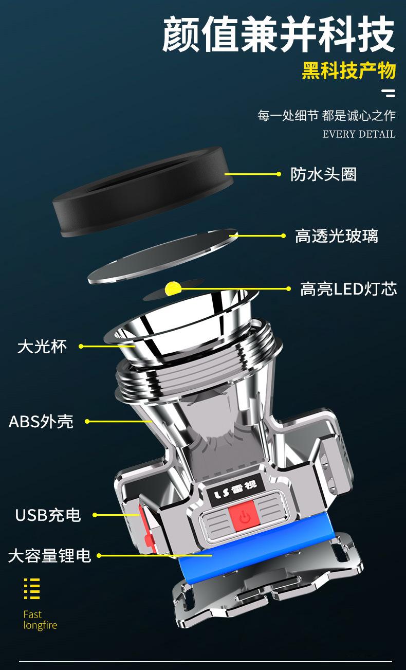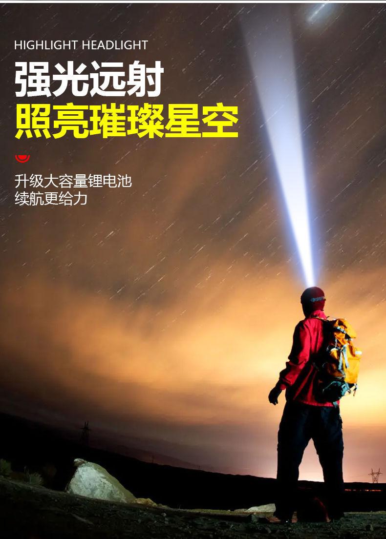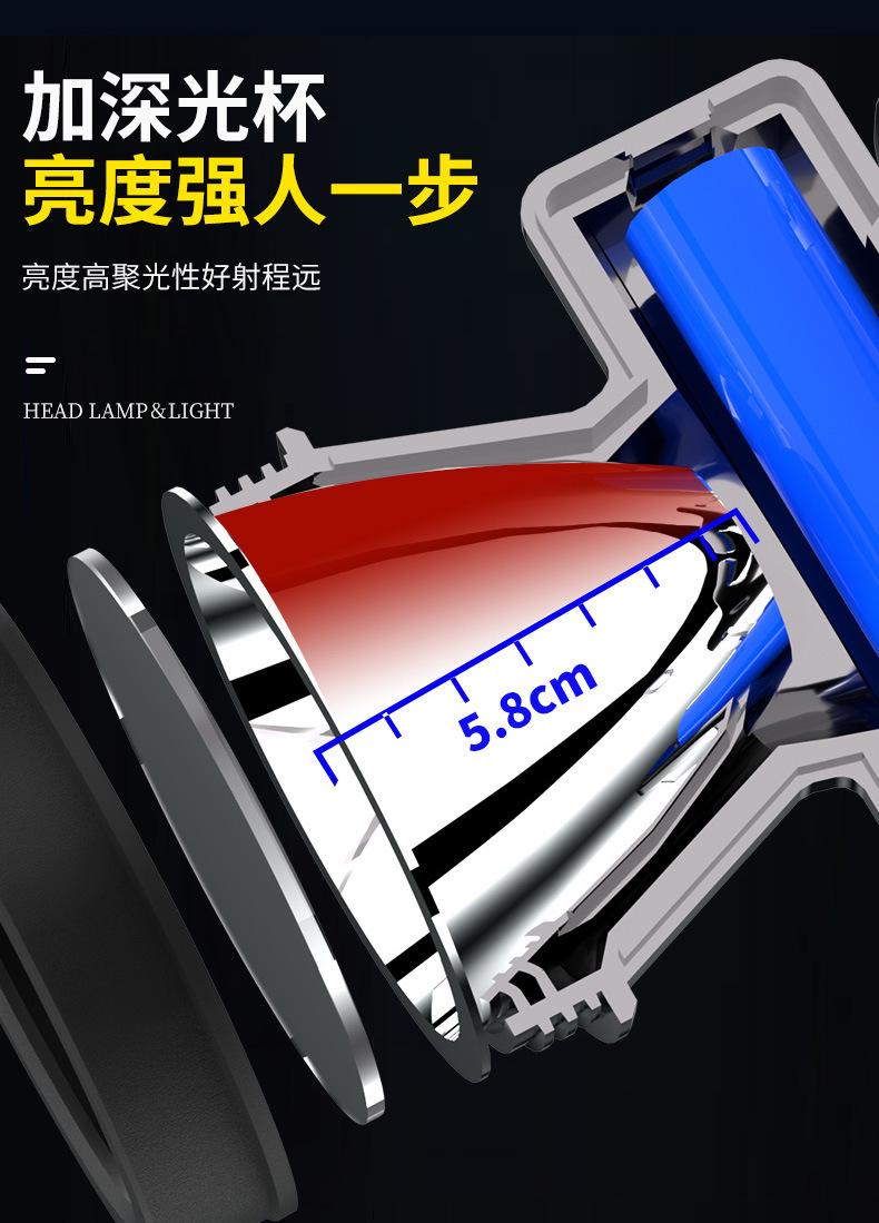 Linterna frontal portátil de luz potente de largo alcance, recargable, impermeable, súper brillante, lámpara de pesca nocturna montada en la cabeza, linterna frontal pequeña de larga duración para exteriores