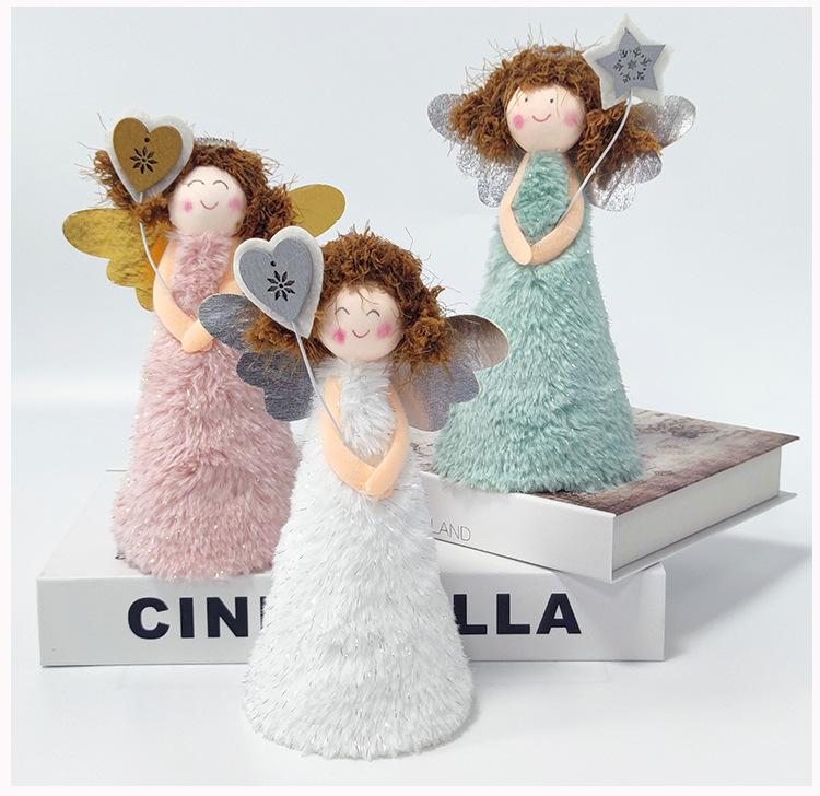 Nuevas decoraciones navideñas transfronterizas: adornos de peluche de ángel de amor, linda y creativa estrella para la copa del árbol de Navidad.