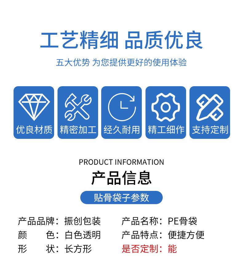 Bolsa Autoadhesiva Rectangular Transparente Blanca de Mano Cpe Tamaño Grande Impresa a Color Boca Plana Bolsa de Almacenamiento Bolsa de Plástico