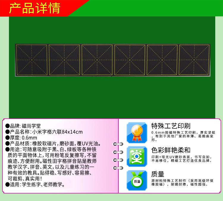 Venta directa de fábrica de pegatinas magnéticas suaves para pizarra, pegatinas de enseñanza de escritura estándar de caracteres chinos, cuadrícula de palabras de mijo de seis piezas 84*14