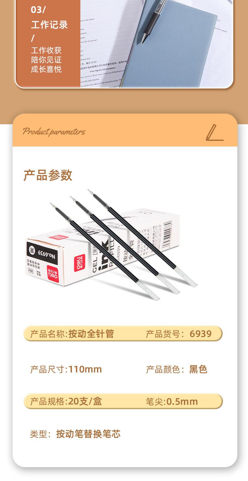 Deli 6939 Quick-drying Neutral Refill 0.5mm Press Full Needle Tube (Black) (Branch)