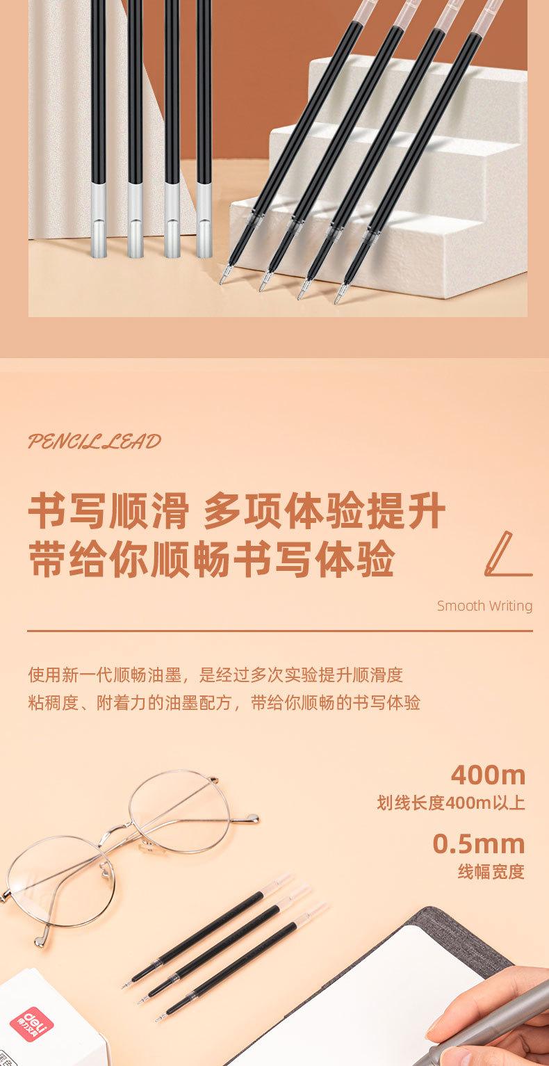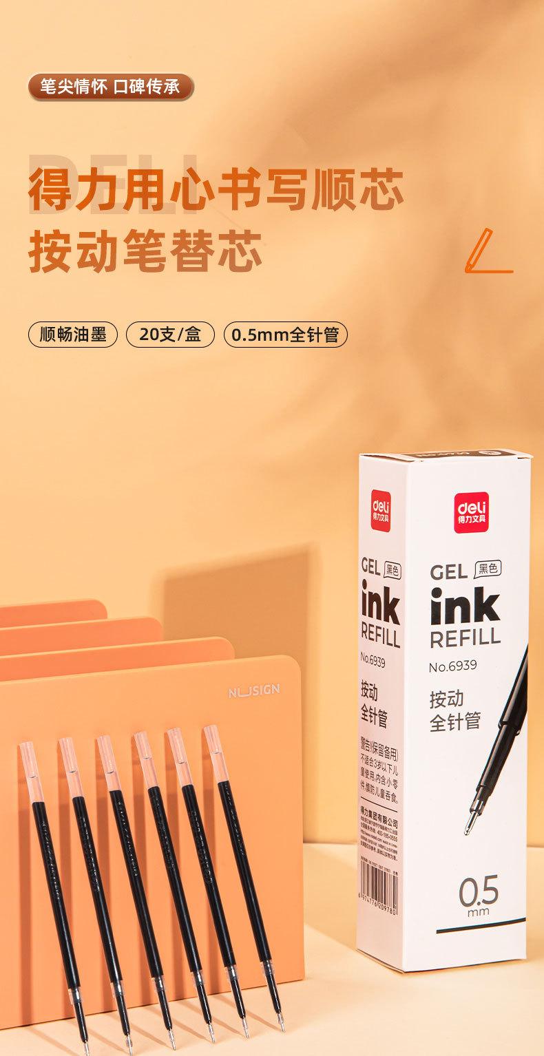 Recambio de bolígrafo de gel Deli 6939 Universal Press con aguja completa de 0,5 mm, núcleo de repuesto liso para estudiantes, color negro