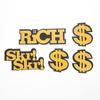 Rich mide 10 cm de ancho, Skrskr mide 8.5 cm de ancho, y los dólares estadounidenses miden 4.2 cm de ancho
