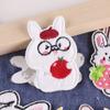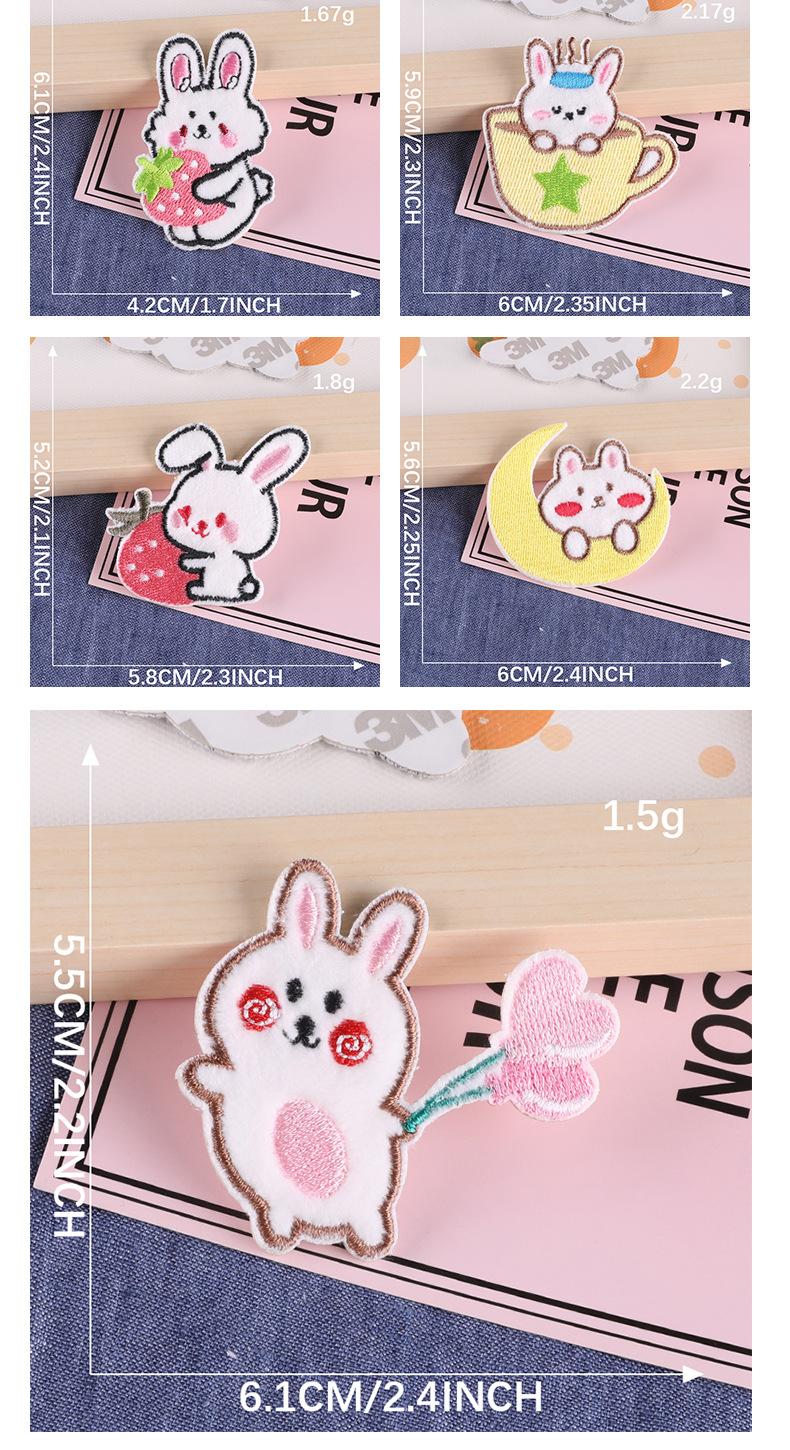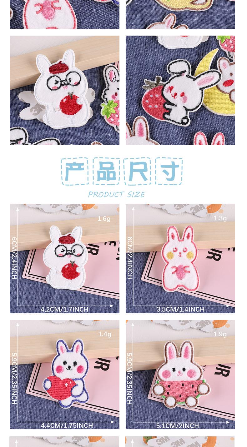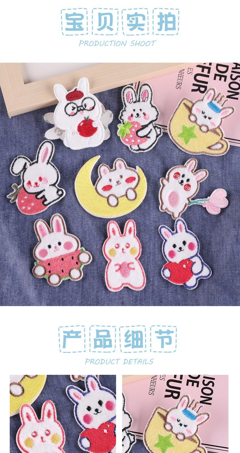 Etiqueta de bordado por computadora con diseño de conejo lindo de dibujos animados, bordado combinado, accesorios para capucha de ropa Zhang Zi, parche autoadhesivo