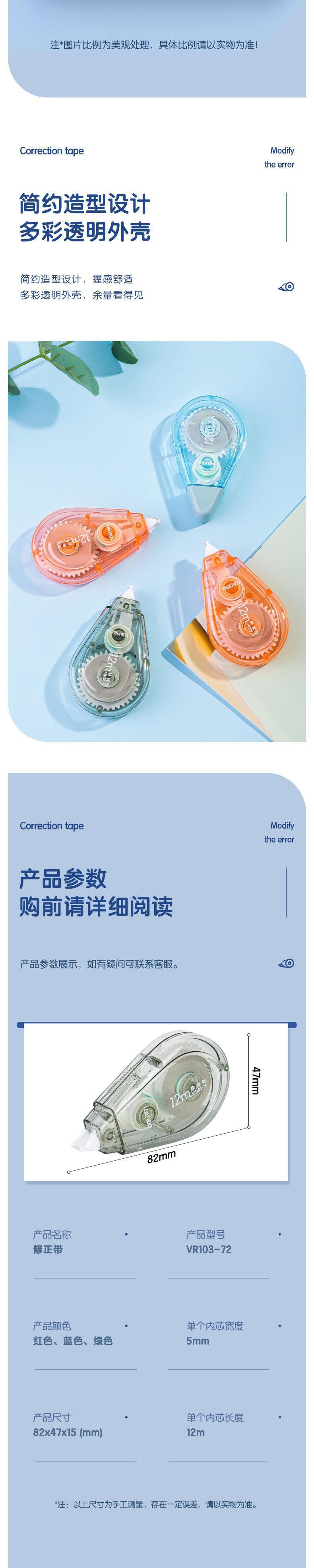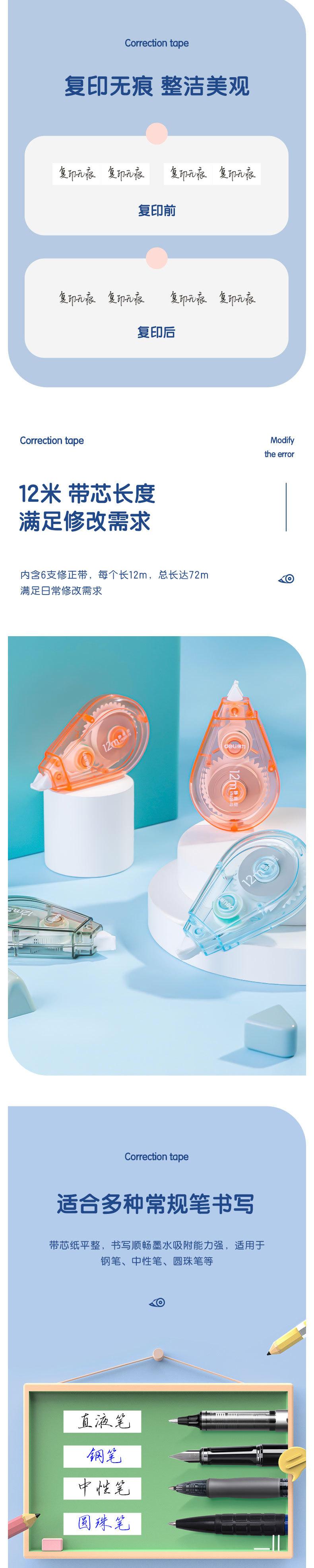 Deli VR103-72 traje de cinta correctora 6 piezas longitud total 72m cinta correctora estudiante gran capacidad cinta correctora