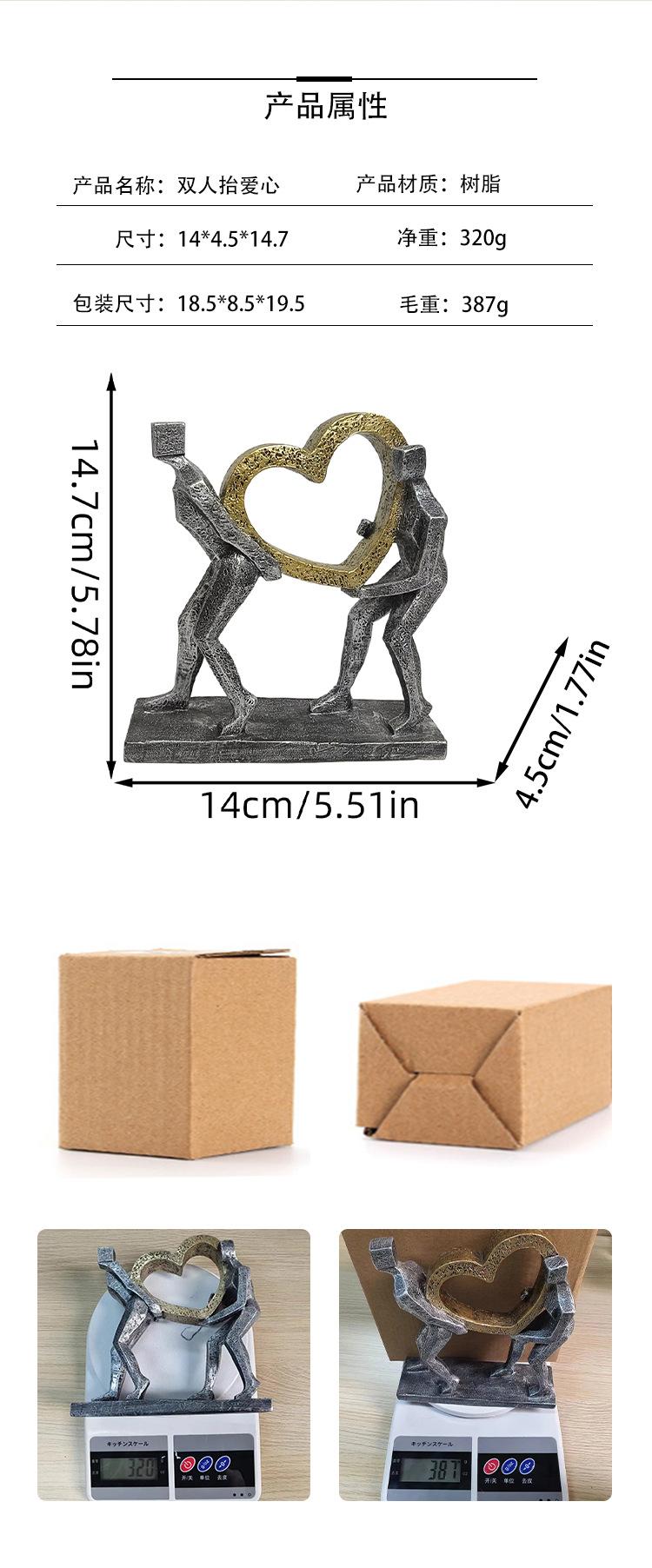 Simulación creativa transfronteriza, metal, doble elevación, amor, hogar, muebles, escritorio, adornos, artesanías de resina, figuras