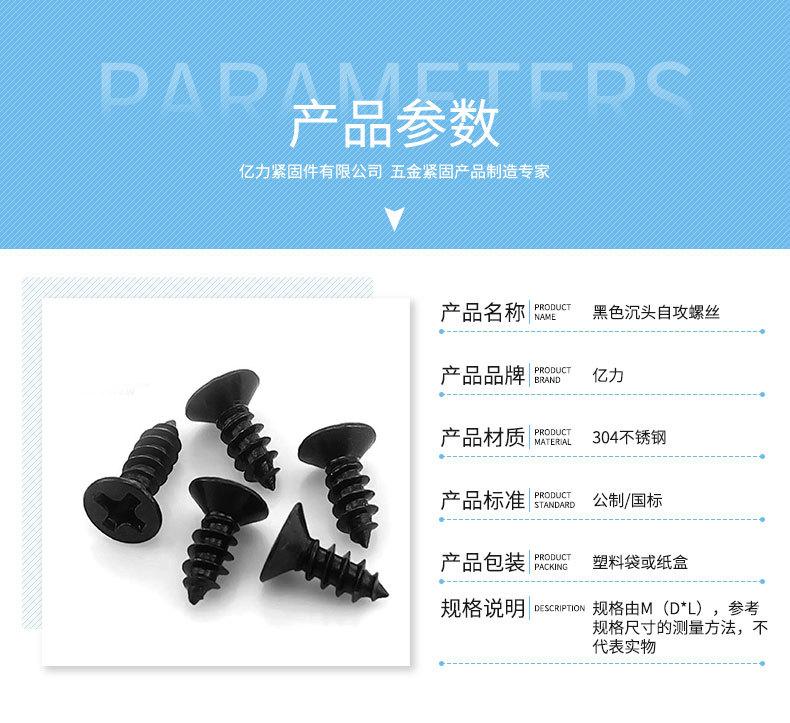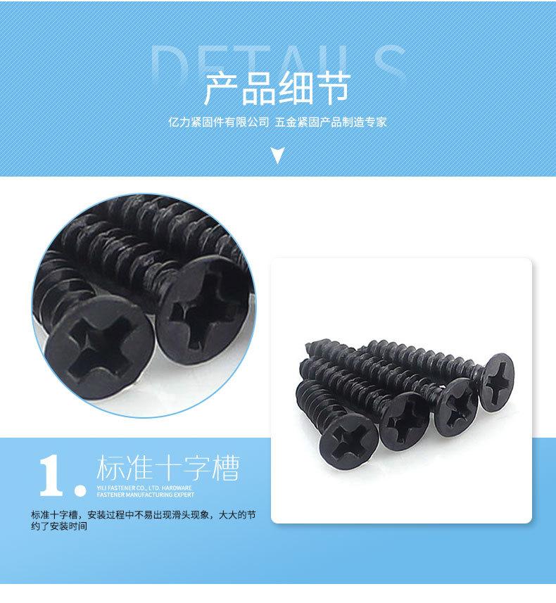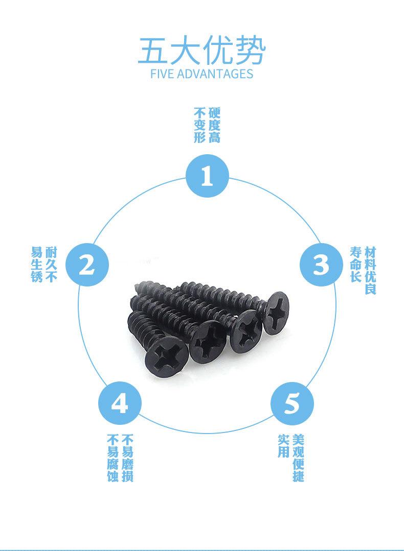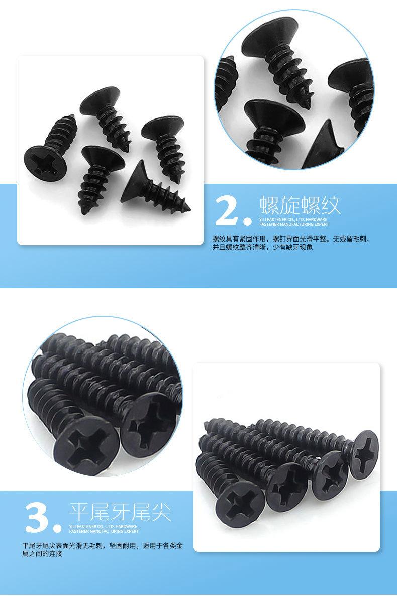 Tornillo autorroscante de cabeza avellanada negra KA, tornillo autorroscante de cabeza plana, tornillo electrónico pequeño, tornillo serie M1-M4
