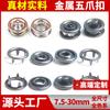 Productos principales: botones blancos grandes de tornillo, botones a presión de metal, botones blancos grandes, varios tipos de ojales, botones de cinco garras, remaches, botones en forma de 9, botones en forma de 8, ganchos para pantalones, hebillas magnéticas, campanas colgantes, serie de tubos de cobre, etc. También se aceptan muestras personalizadas.
