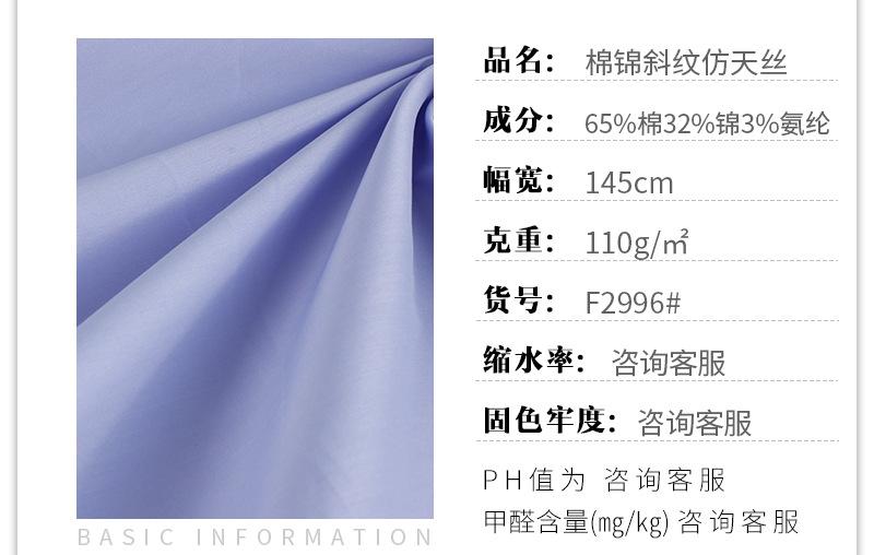 Tejido Sarga Imitación Tencel de 110g, Tejido Brocado de Algodón Elástico, Tejido para Camisas y Vestidos Totalmente Procesado Resistente a las Arrugas