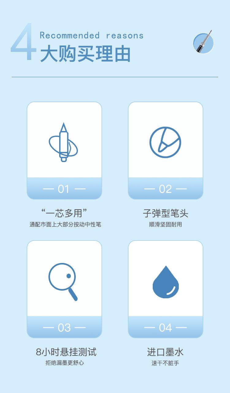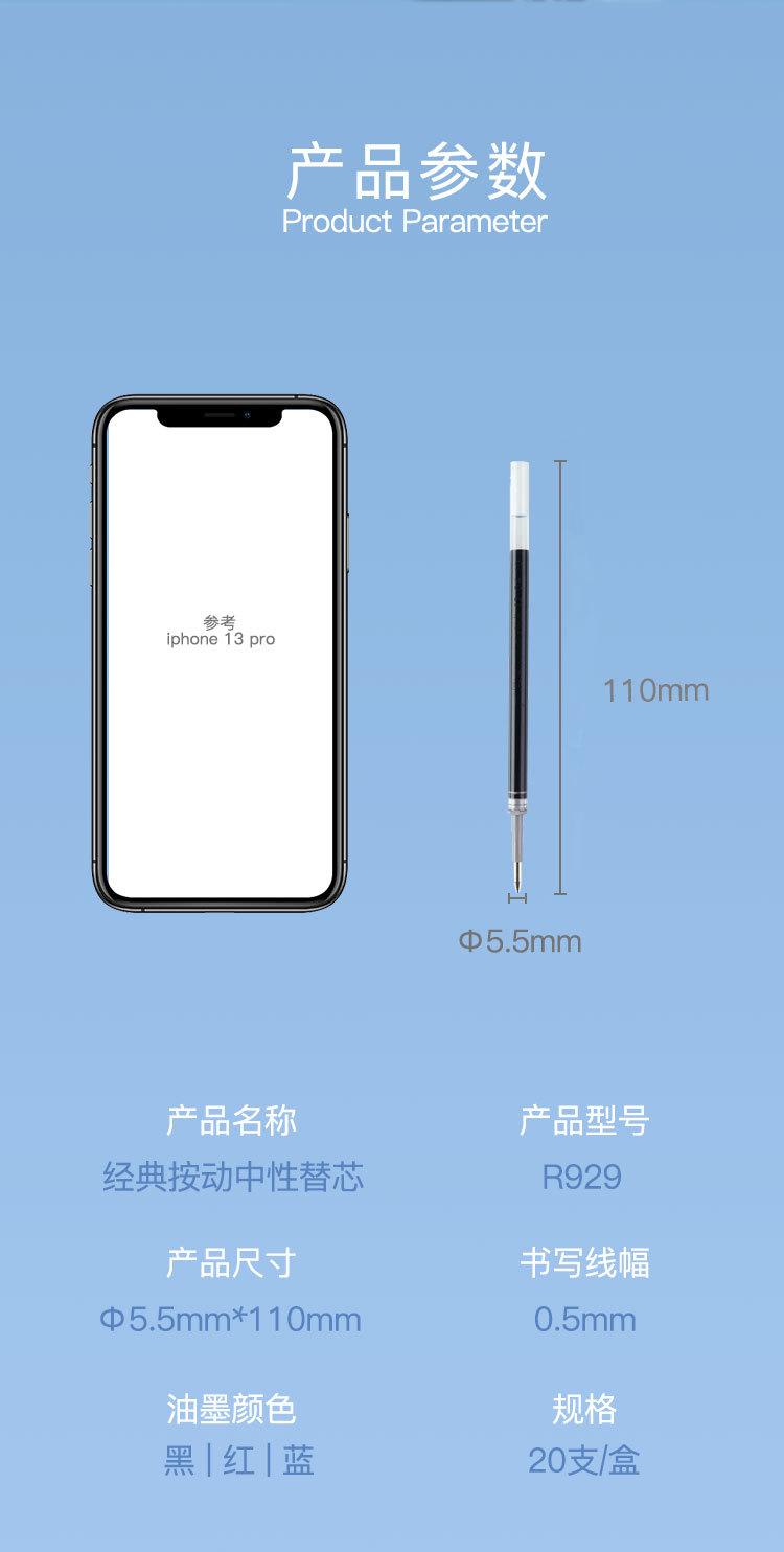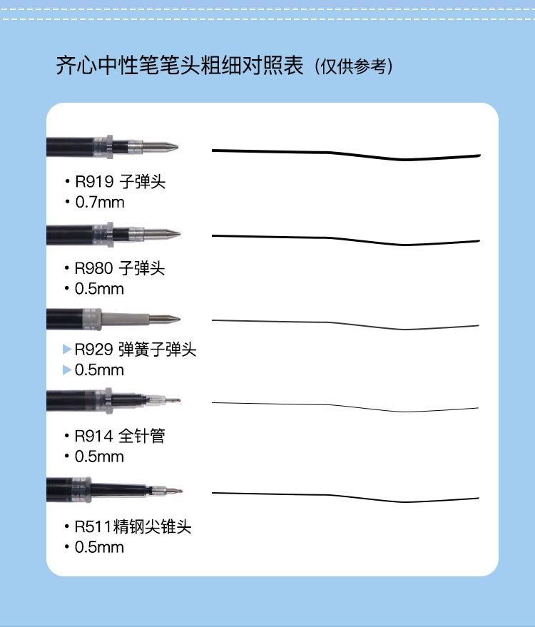 Qixin R929 Sustituto Neutro Núcleo 0.5mm Clásico Presión Núcleo de Repuesto Presión Cabeza de Bala Recarga Firma
