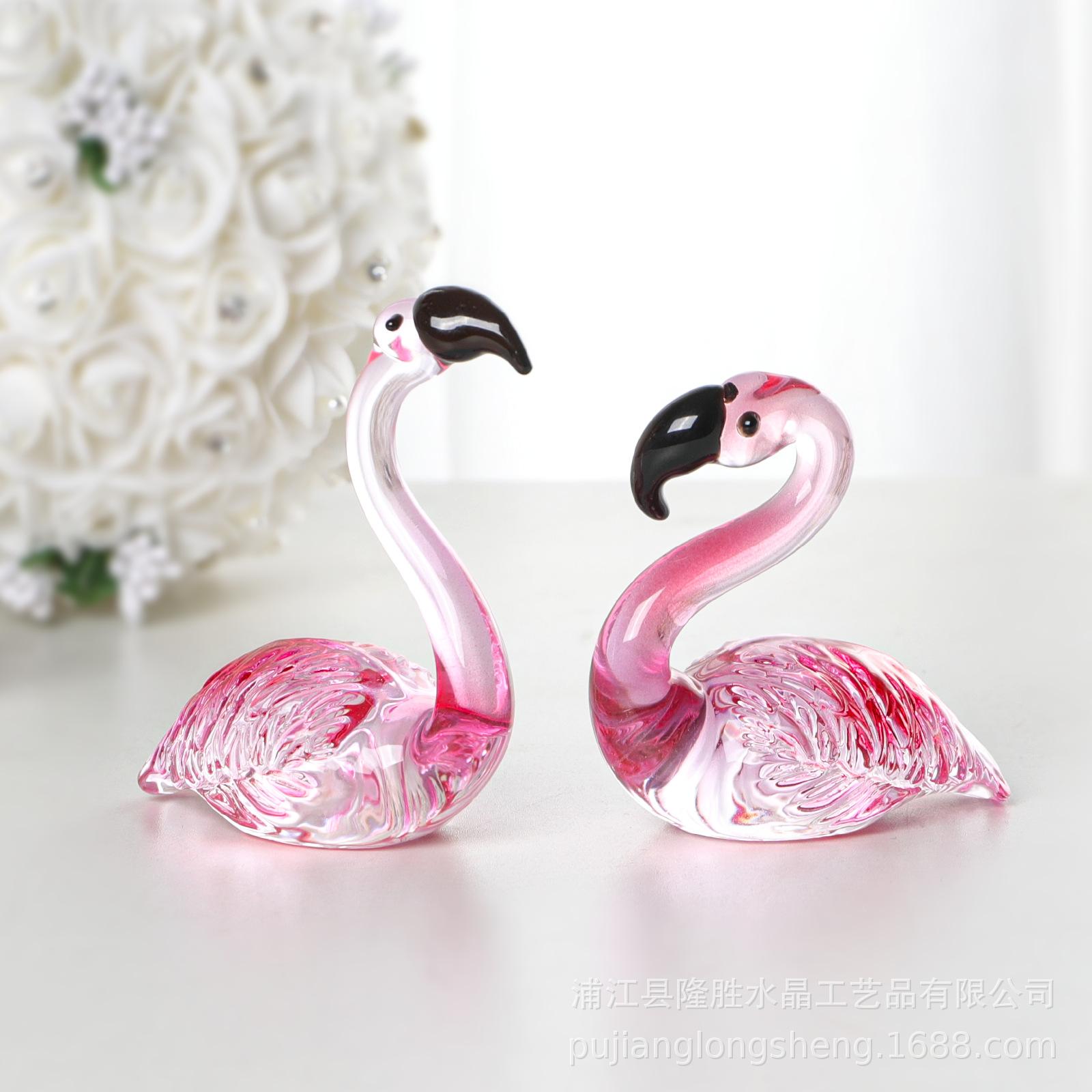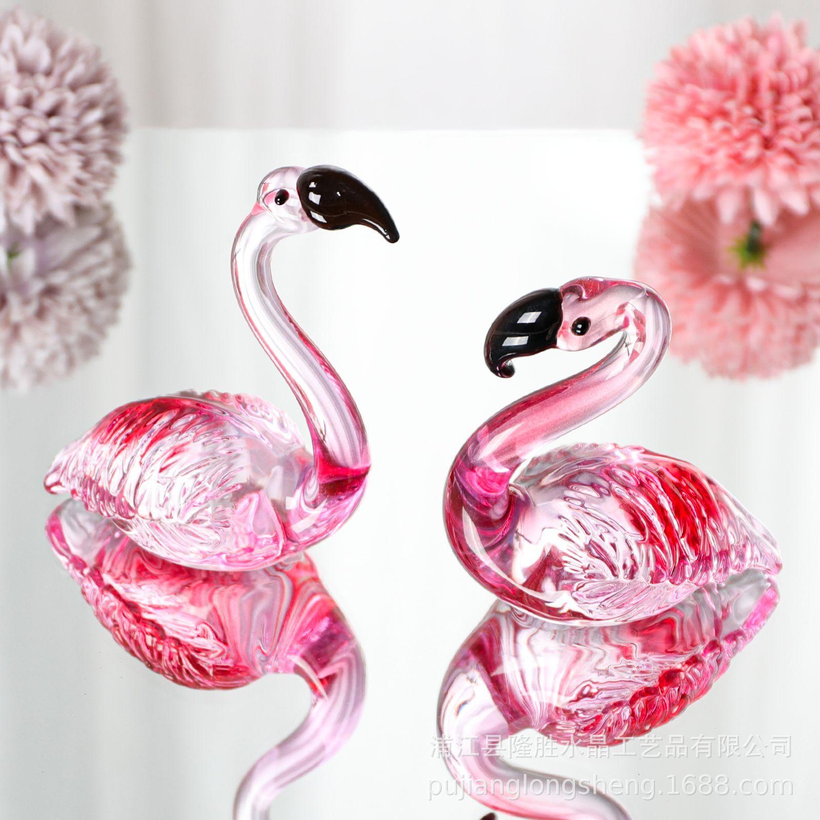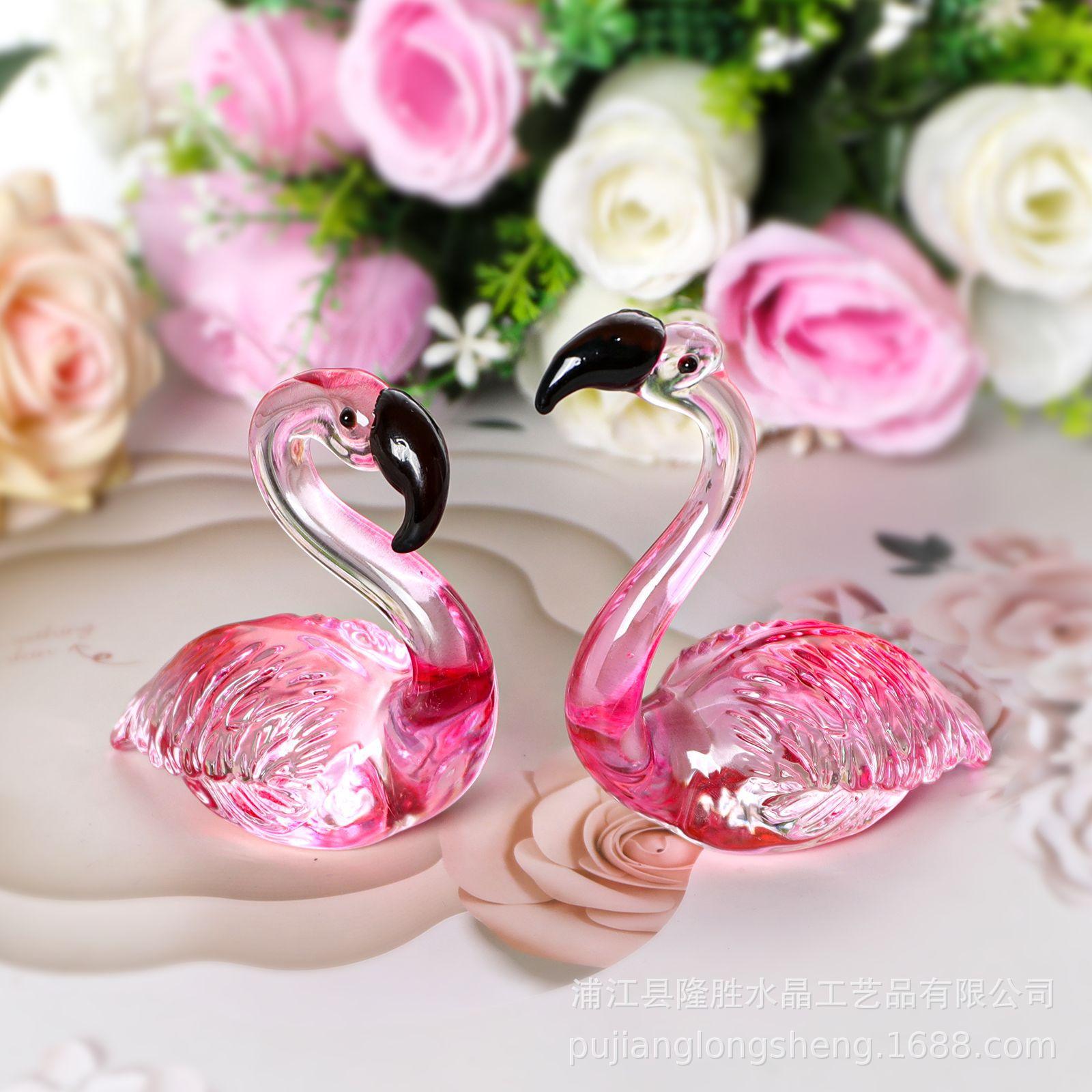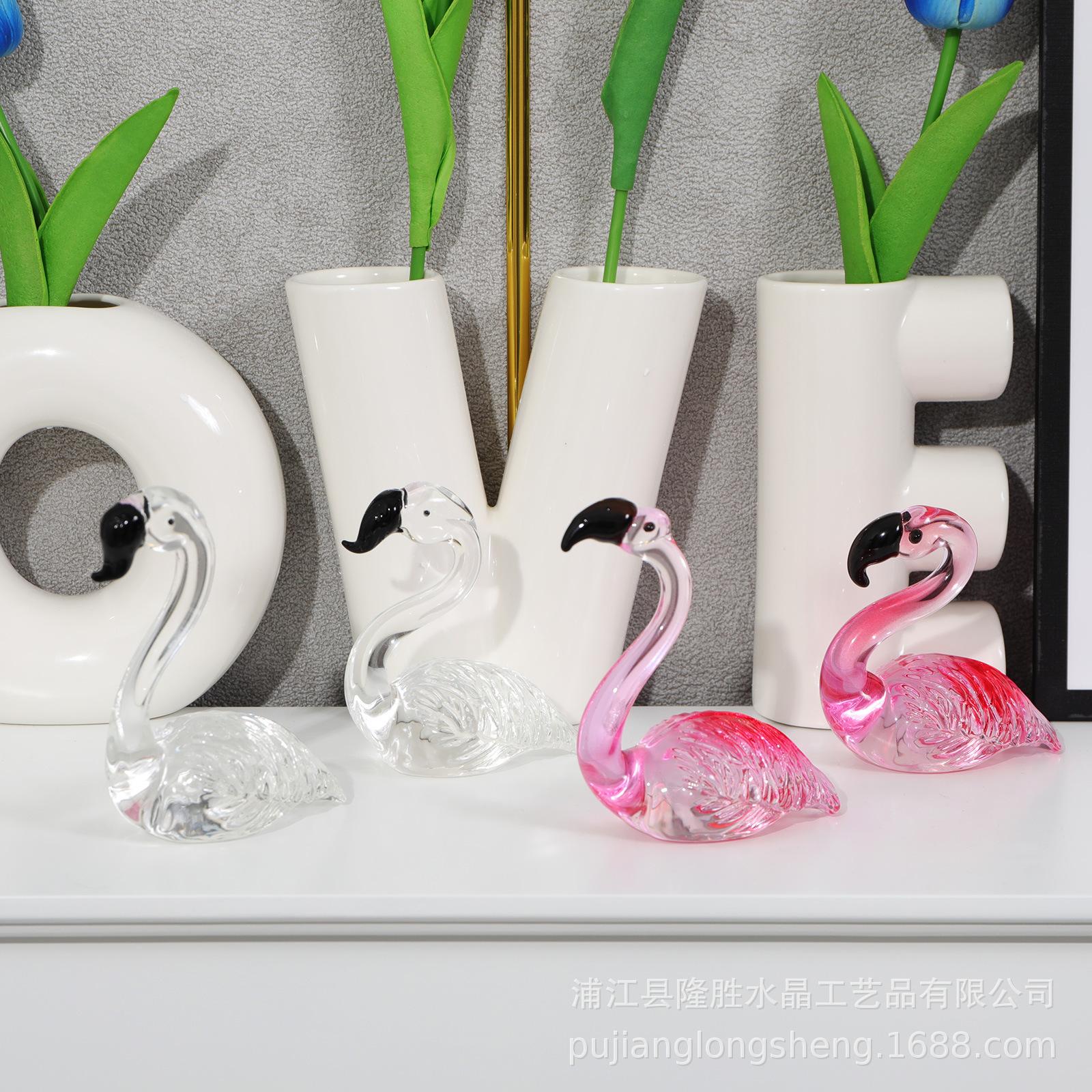 Adornos de cristal suaves para escritorio de sala de estar modernos y sencillos, un par de flamencos transparentes de color rosa, artesanías de jardinería de animales
