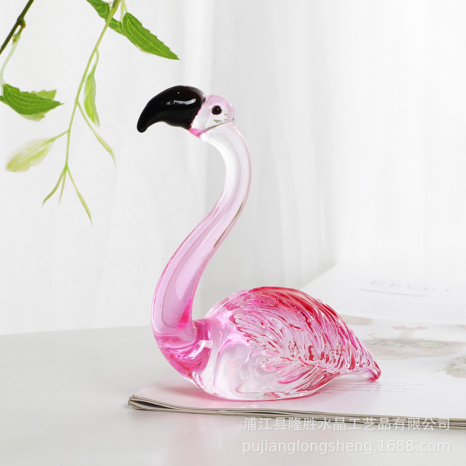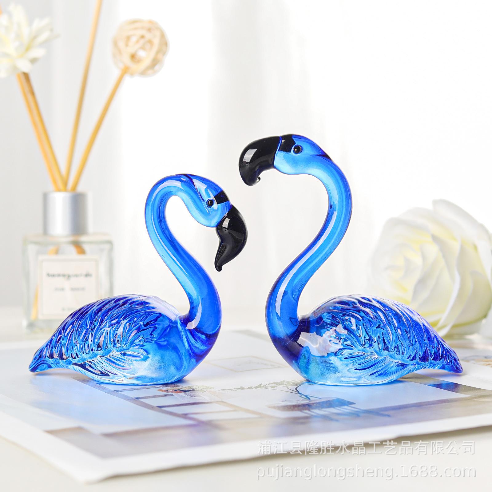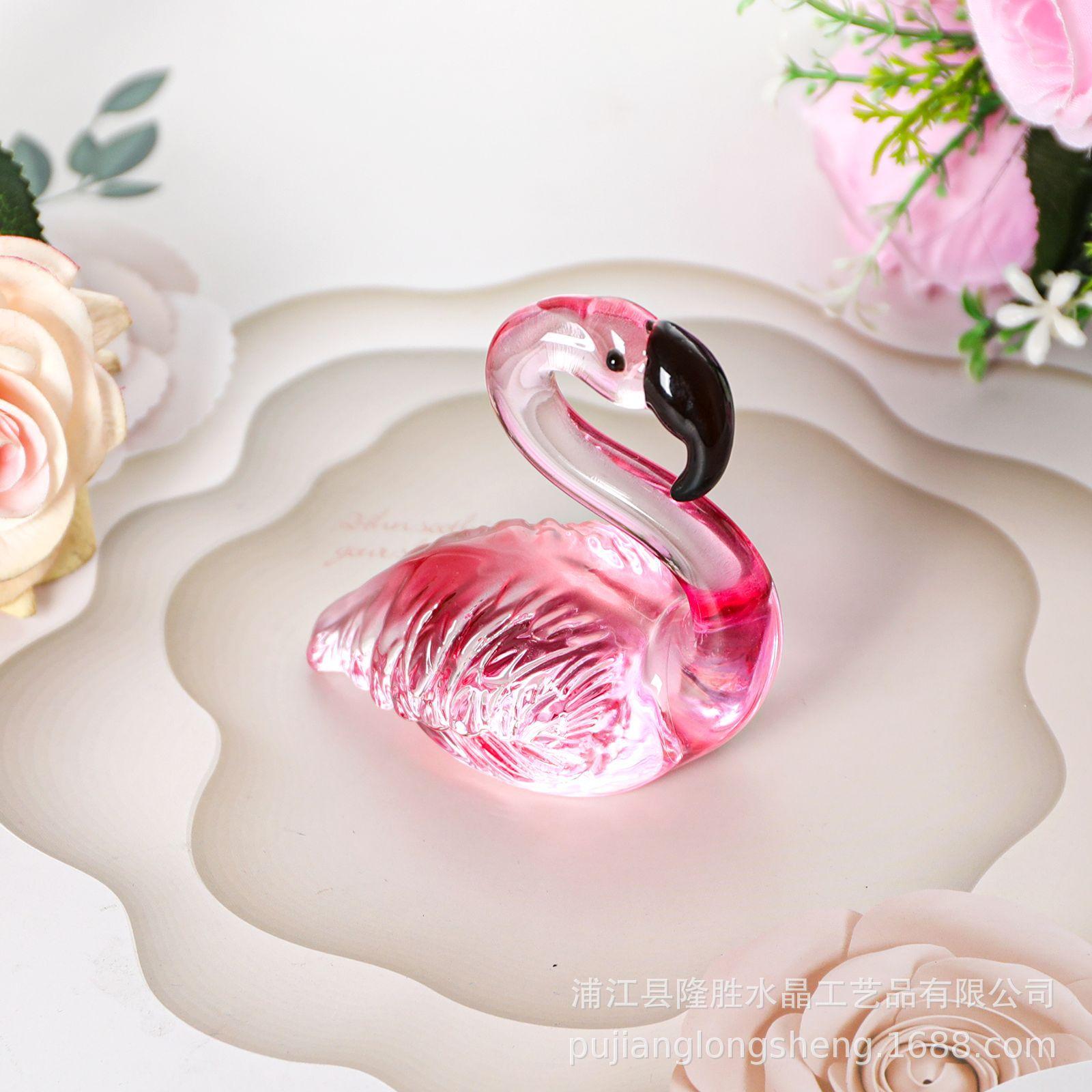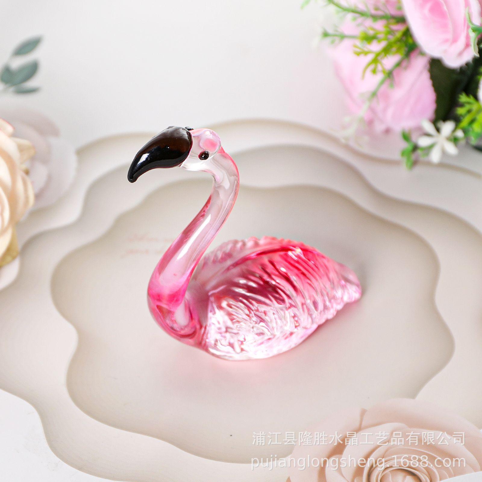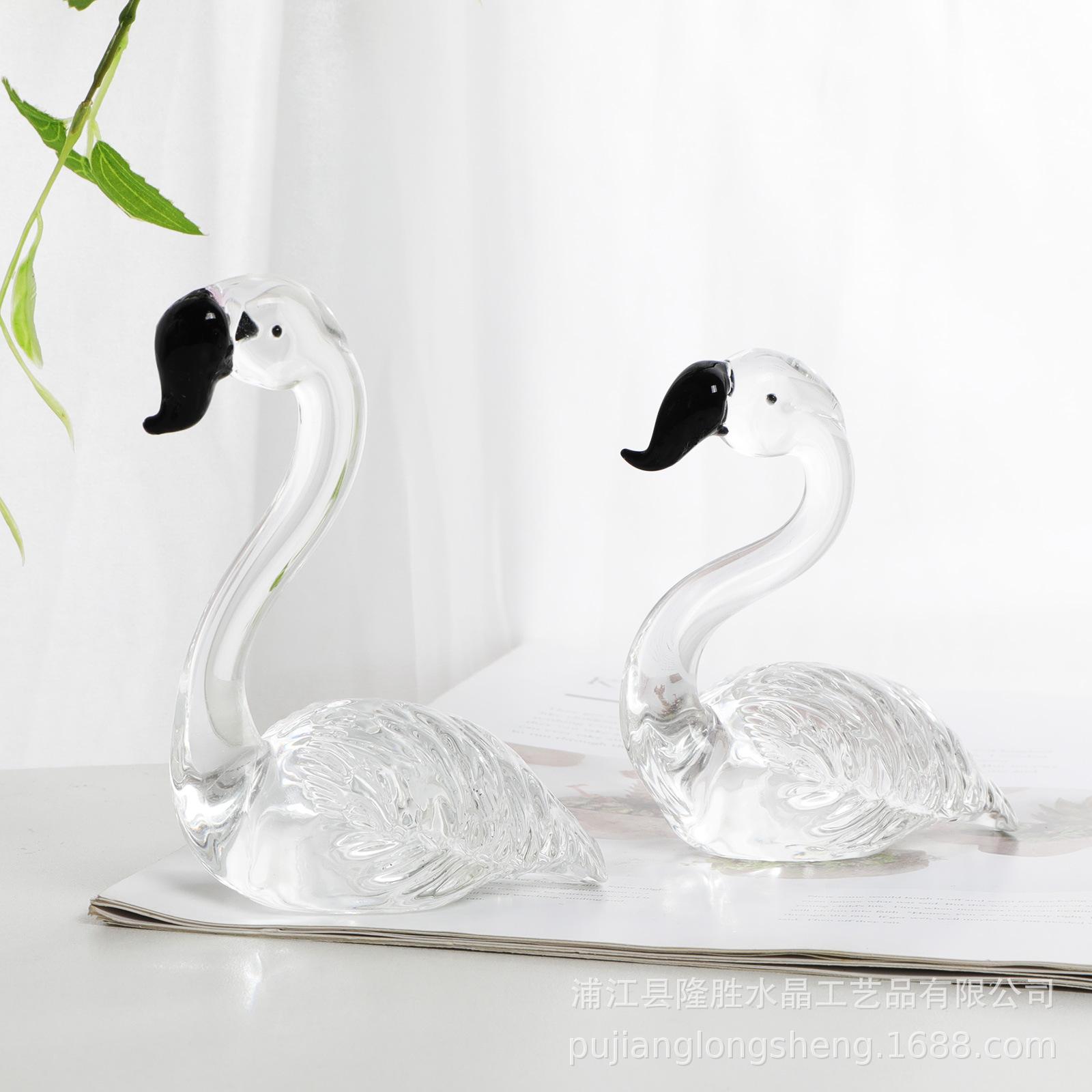 Adornos de cristal suaves para escritorio de sala de estar modernos y sencillos, un par de flamencos transparentes de color rosa, artesanías de jardinería de animales