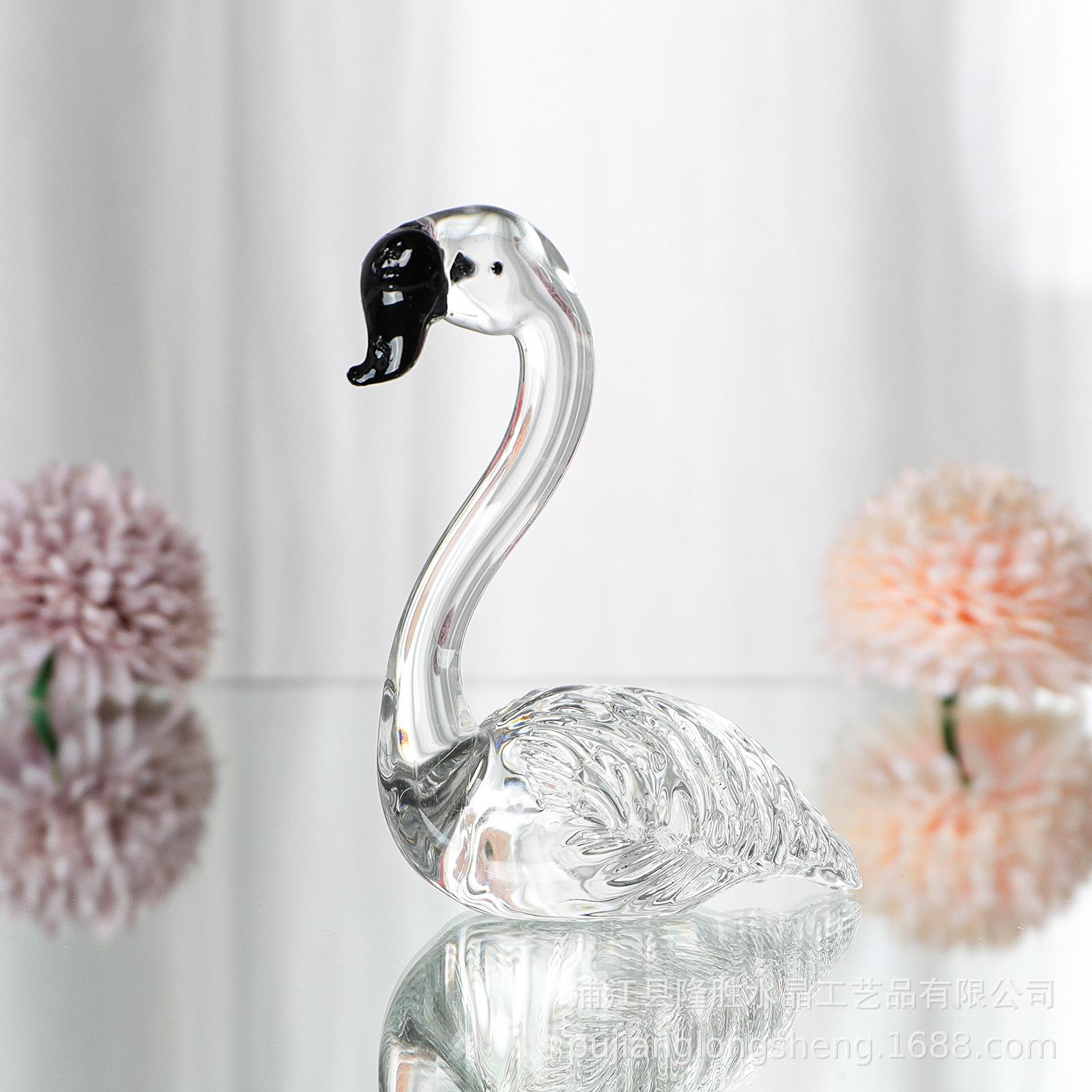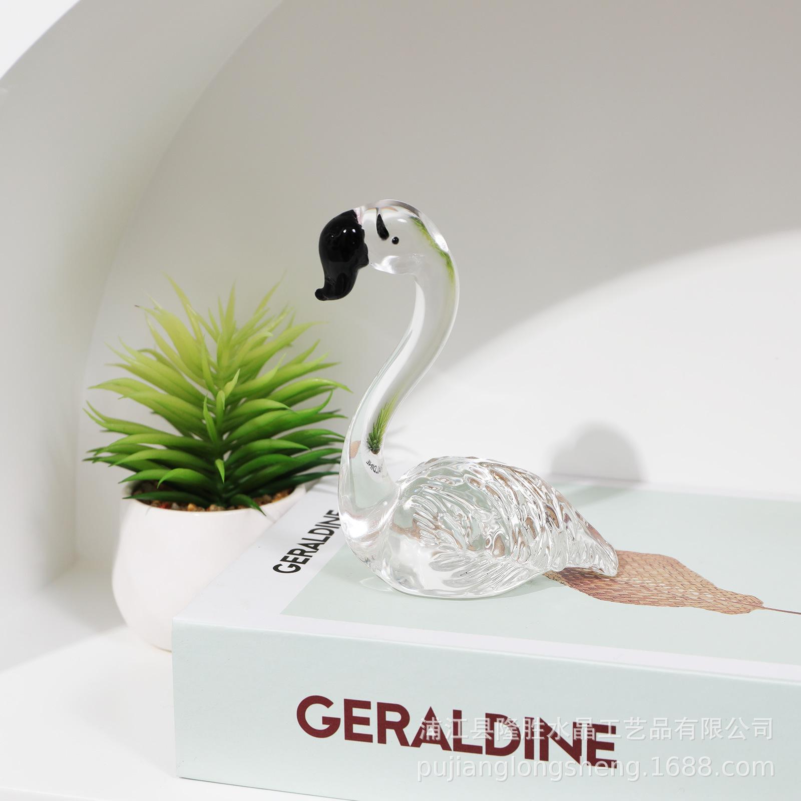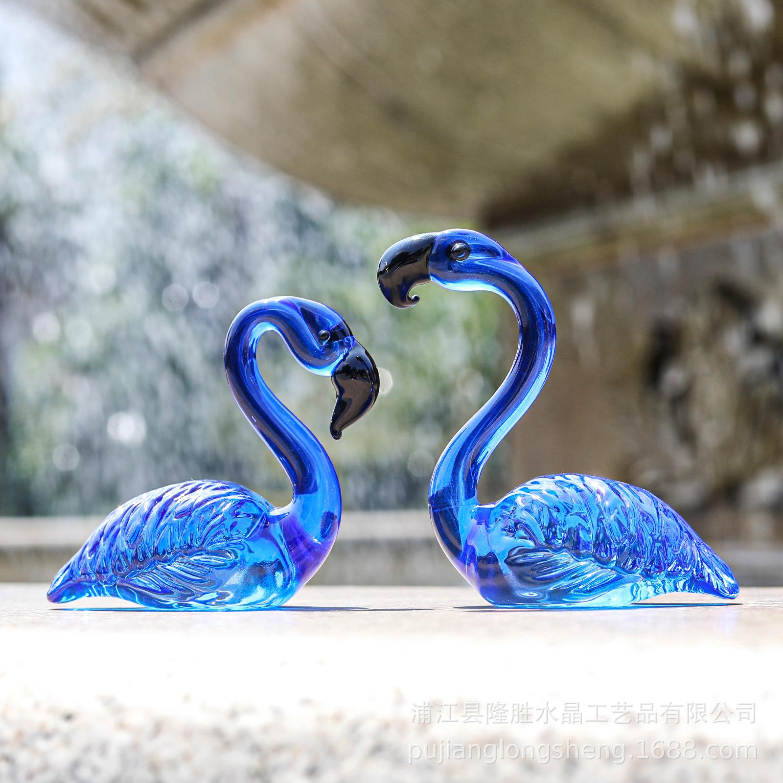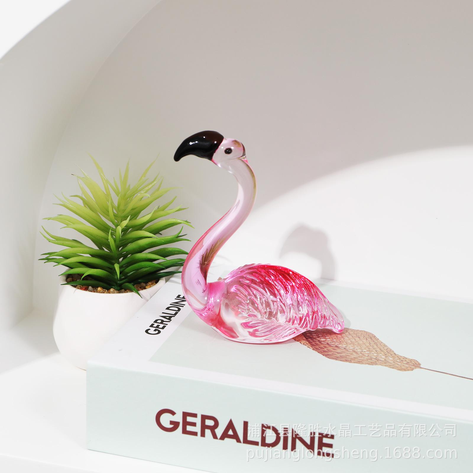 Adornos de cristal suaves para escritorio de sala de estar modernos y sencillos, un par de flamencos transparentes de color rosa, artesanías de jardinería de animales
