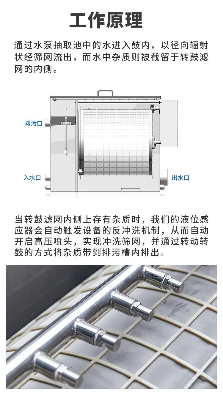 Máquina de microfiltración de tambor rotatorio de acero inoxidable Qili para acuicultura, separación de estiércol de pescado sólido-líquido, retrolavado, filtro circulante para estanques de peces.