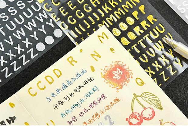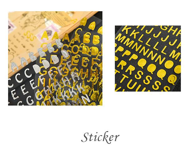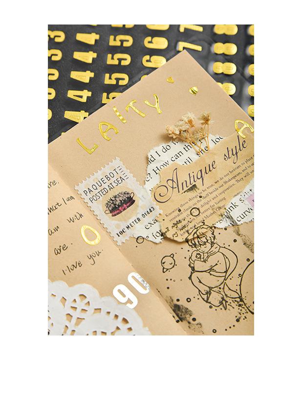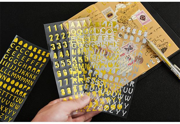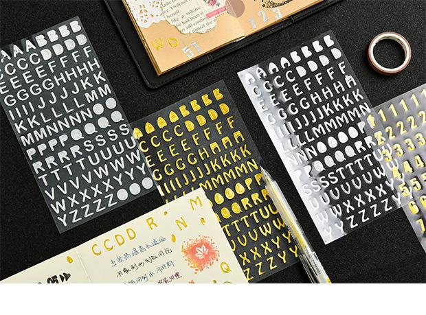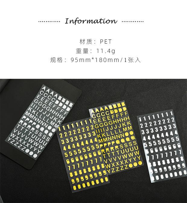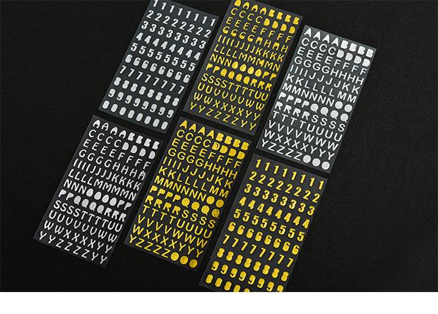 Etiqueta adhesiva impermeable con letras y números para manualidades, diseño decorativo con patrón pequeño, ideal como collage.