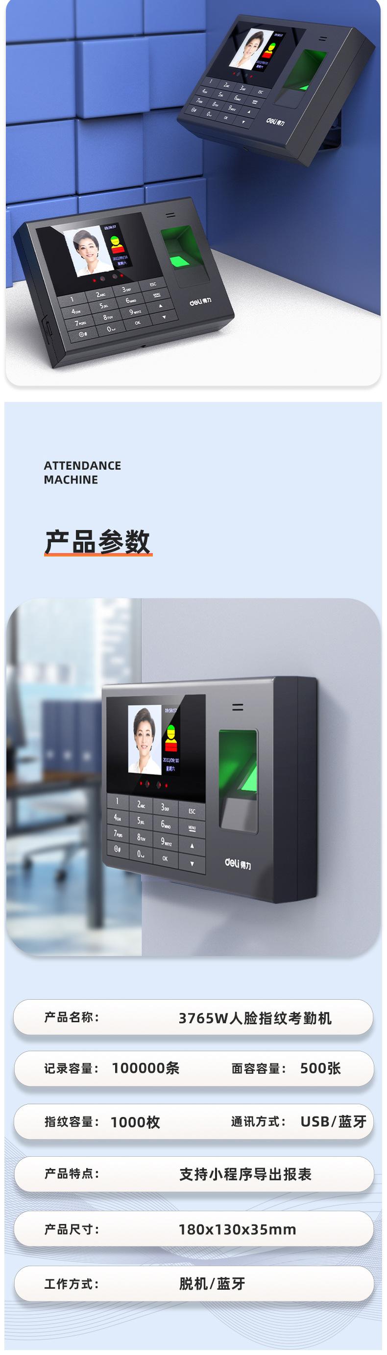 Máquina de tarjetas perforadas Deli 3765W, reconocimiento de huellas dactilares, máquina todo en uno, máquina de asistencia, registro de entrada, teléfono móvil, Bluetooth, guía, informe