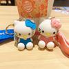 Lindo colgante de llave de gato KT de dibujos animados, colgante para bolso de pareja, llavero de joyería al por mayor, llavero de goma suave para coche.